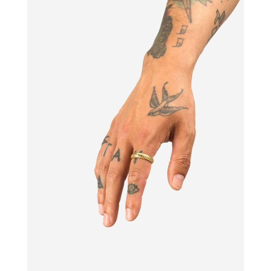 Maak kennis met de iconische Ben XS ring, een symbool van tijdloos design en echt vakmanschap. Gemaakt met precisie en aandacht voor detail, heeft deze ring een strak maar gedurfd uniek ontwerp dat verfijning uitstraalt. Door de effen binnenkant heb je de mogelijkheid om het te personaliseren door middel van een gravure, waardoor het een ideale keuze is als trouwring of natuurlijk voor jezelf. Markeer je speciale momenten met de Ben XS Ring, een gekoesterd accessoire dat verfijnd vakmanschap combineert met sentimentele waarde. Ontworpen in Amsterdam en handgemaakt in Zuid-Oost Azië van gerecycled zilver met een premium gold plating (3.0 micron dik). De plating is gemiddeld 5 maal dikker dan reguliere gold plated items. Ga jij het leven vieren door jezelf of iemand anders te trakteren op dit krachtige sieraad?