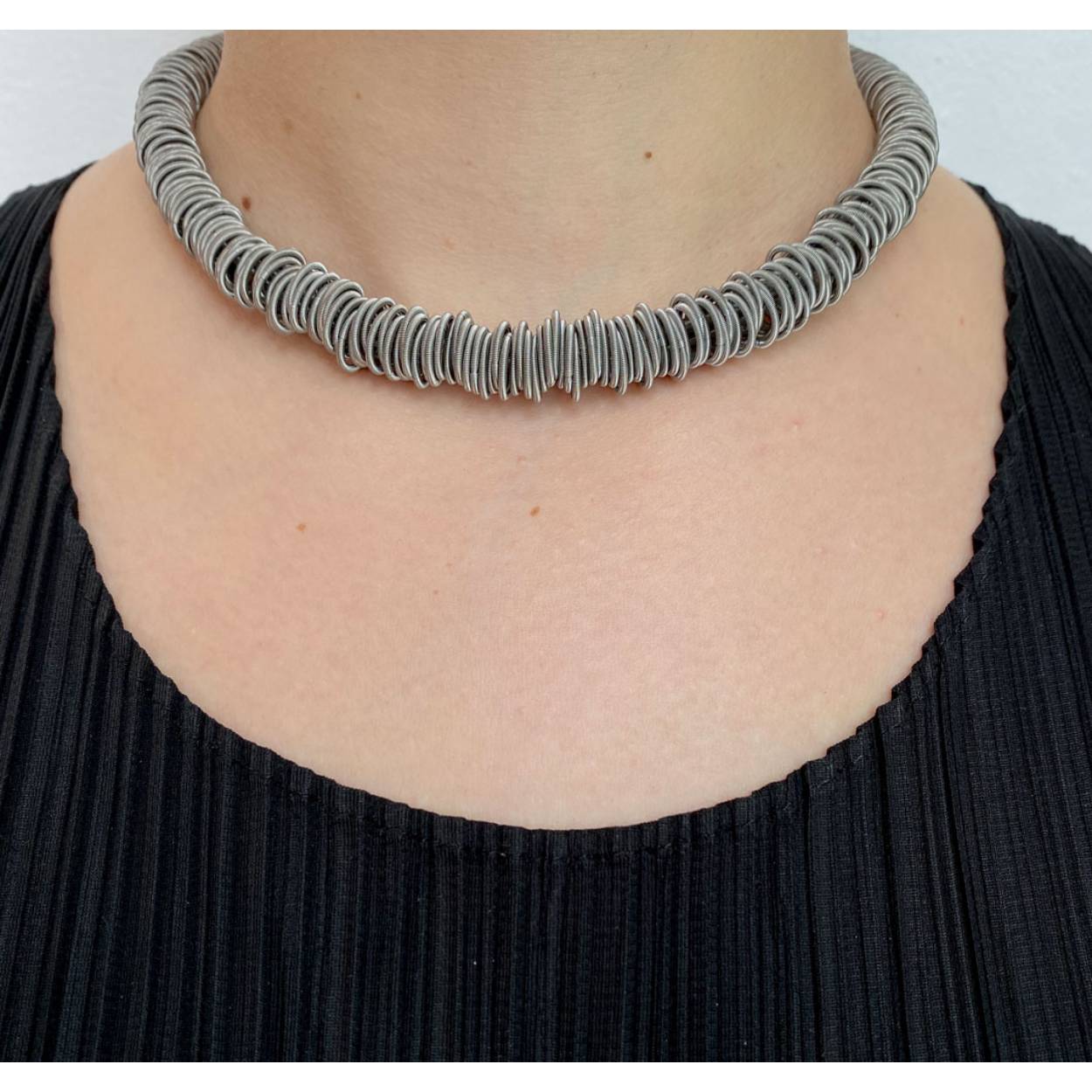 Het materiaal van het collier is edelstaal, de lengte van het collier is 41 cm en het heeft een magnetische sluiting.
