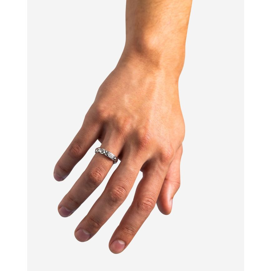 De Ring Venetian Twist Zilver is een symbool van kracht en elegantie in één vloeiend ontwerp. De gedraaide Venetiaanse schakel creëert een dynamisch spel van licht en schaduw dat verbondenheid en balans weerspiegelt. Elk detail toont authentiek vakmanschap en tijdloze stijl. Ontworpen in Amsterdam en handgemaakt in Zuid-Oost Azië van 100% gerecycled 925 sterling zilver. Draag jouw verhaal met trots en ontdek de kracht van verbinding.