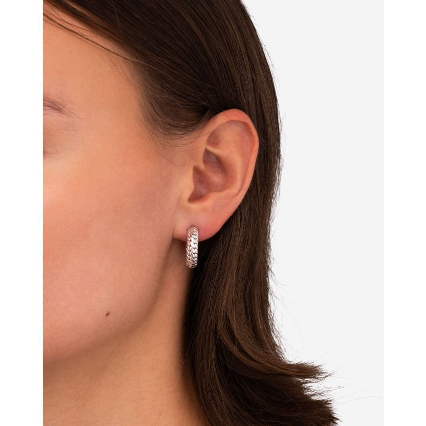 De iconische Ben Small oorbellen zijn geïnspireerd op de populaire Ben-schakel, die een van onze grootste collecties vormt. Deze handgeweven schakels worden vervaardigd van gerecycled zilver in Zuidoost-Azië. De Ben-schakel staat symbool voor heldhaftigheid en vertrouwen. Ethiek en esthetiek smelten samen in dit product. handgemaakt met duurzame materialen om een leven lnang mee te gaan.