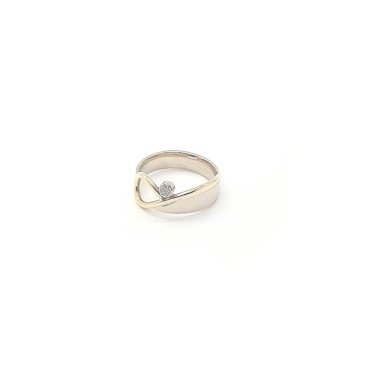 Deze prachtige bicolor ring is gemaakt van wit en geelgoud. De ring krijgt met het brede ontwerp toch een elegante look. De rechte ring in combinatie met de ronde lus geeft balans in het ontwerp. Voor de mensen die iets meer willen dan een fijn ontwerp is deze ring perfect.