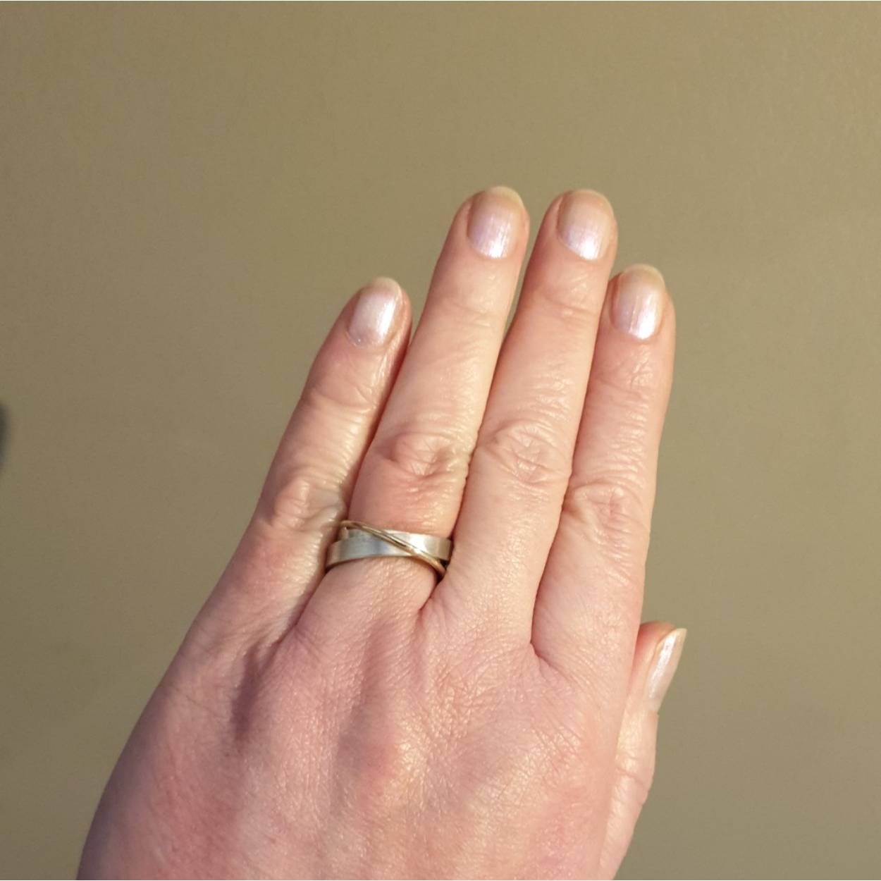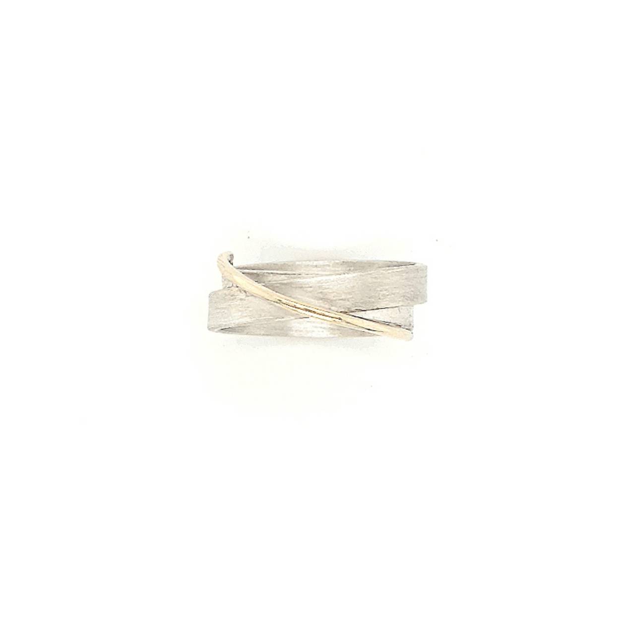 Deze sprekende ring van mat zilver en goud zal je prachtig staan. Het glanzende goud komt nog meer tot zijn recht door het contrast met het matte zilver en de ring is daardoor goed te dragen bij zowel gouden als zilveren sieraden. Samen met de hanger, armband en oorbellen uit deze collectie maak je een mooie set waarmee je zult stralen.
