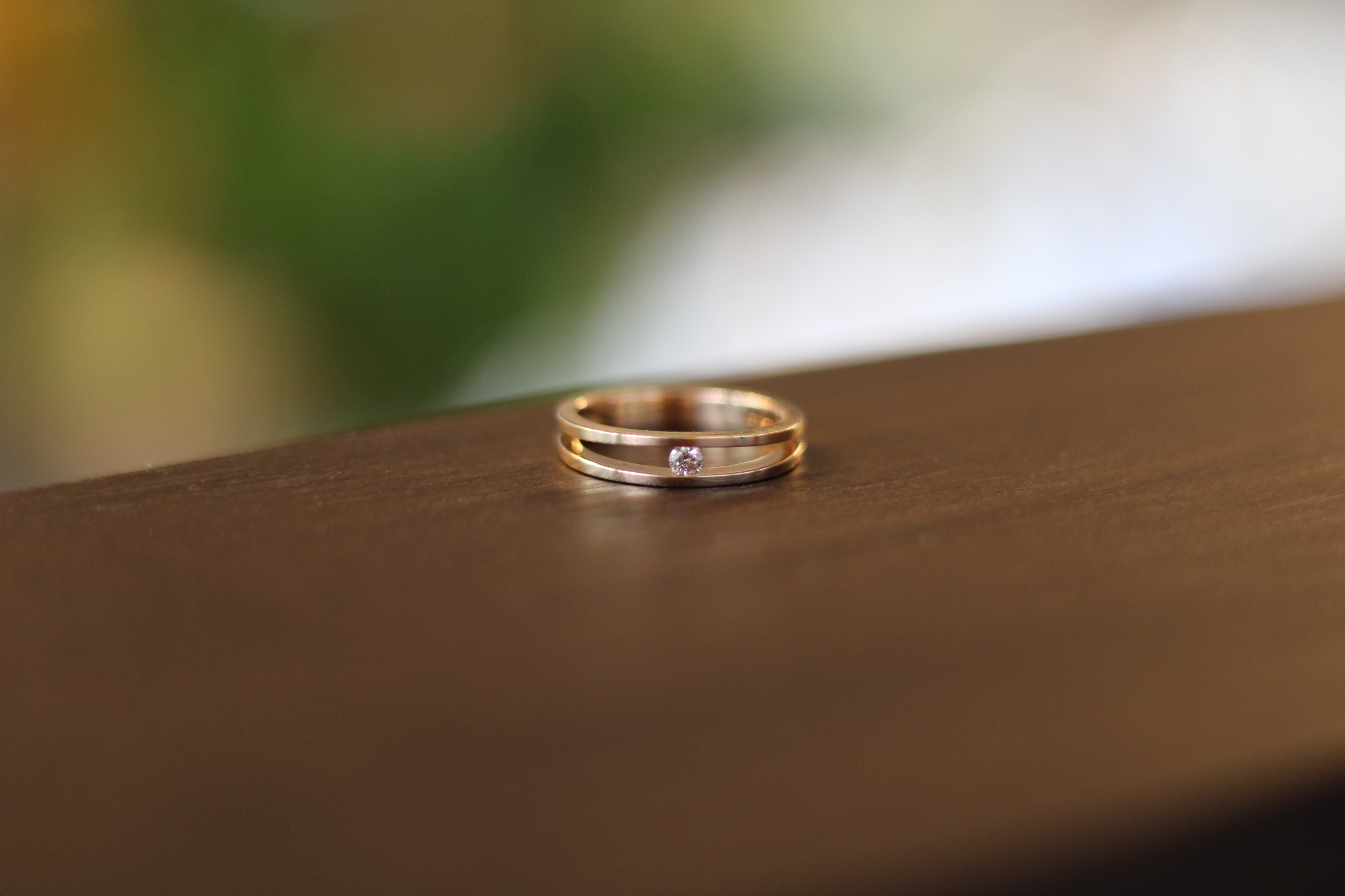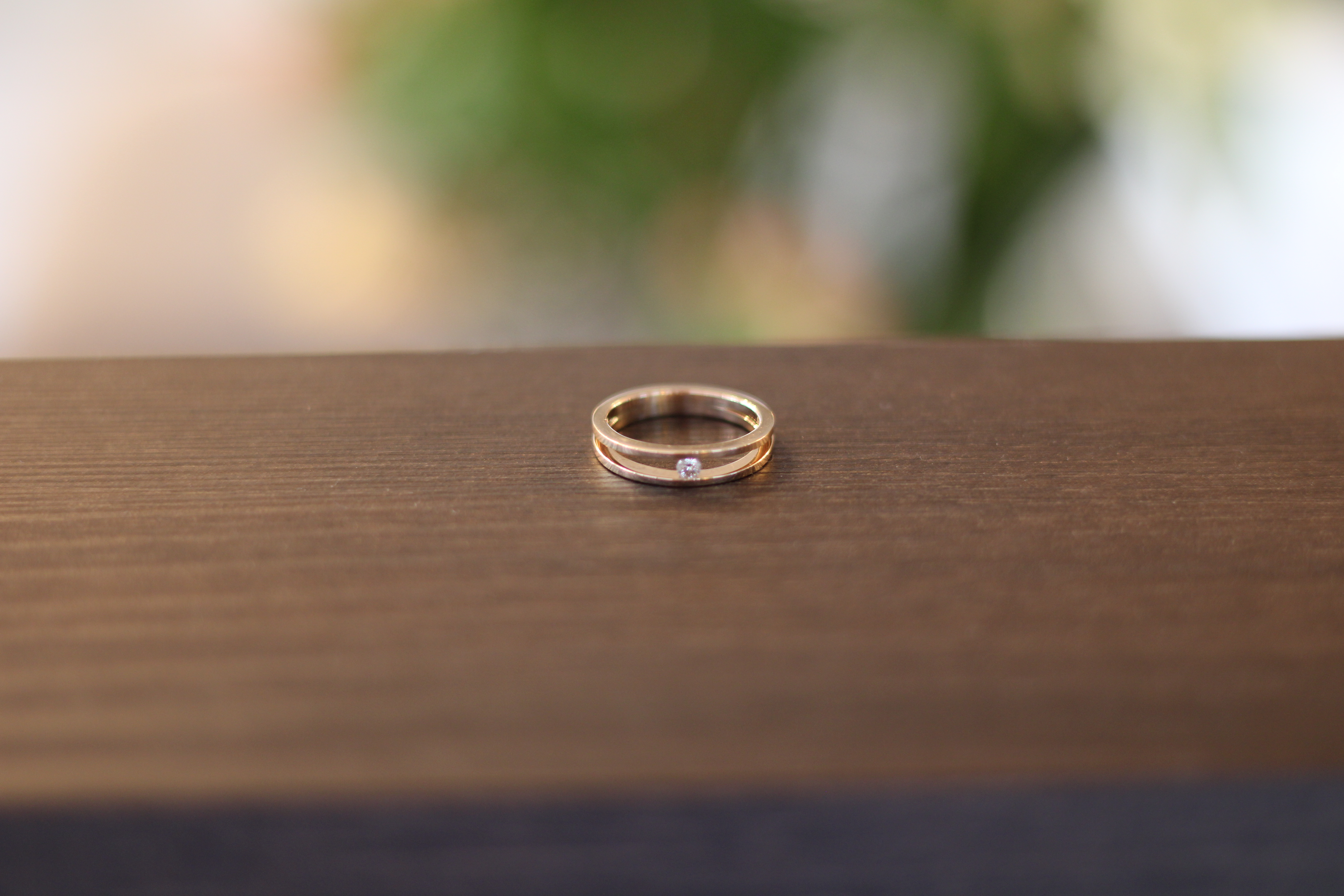 Strakke, minimalistische dubbele geelgouden ring met prachtige 0.05 karaat diamant.