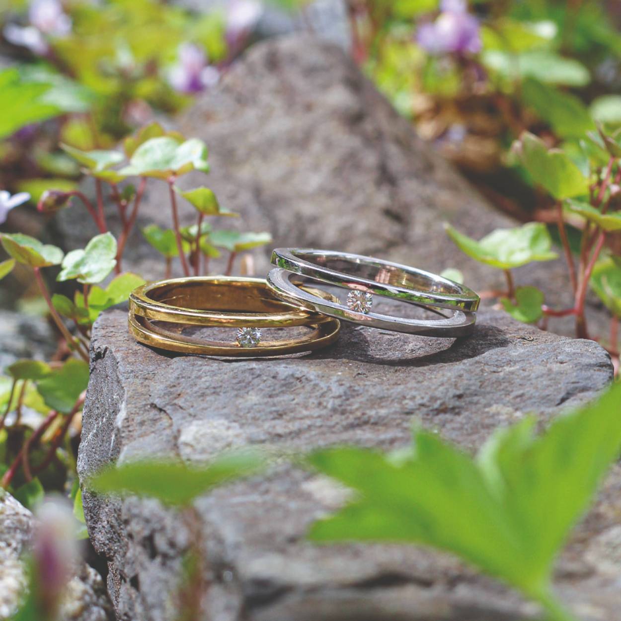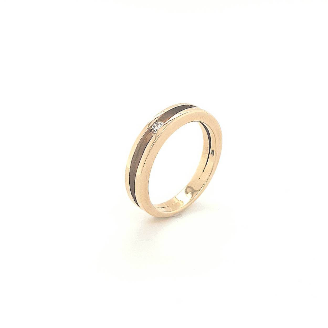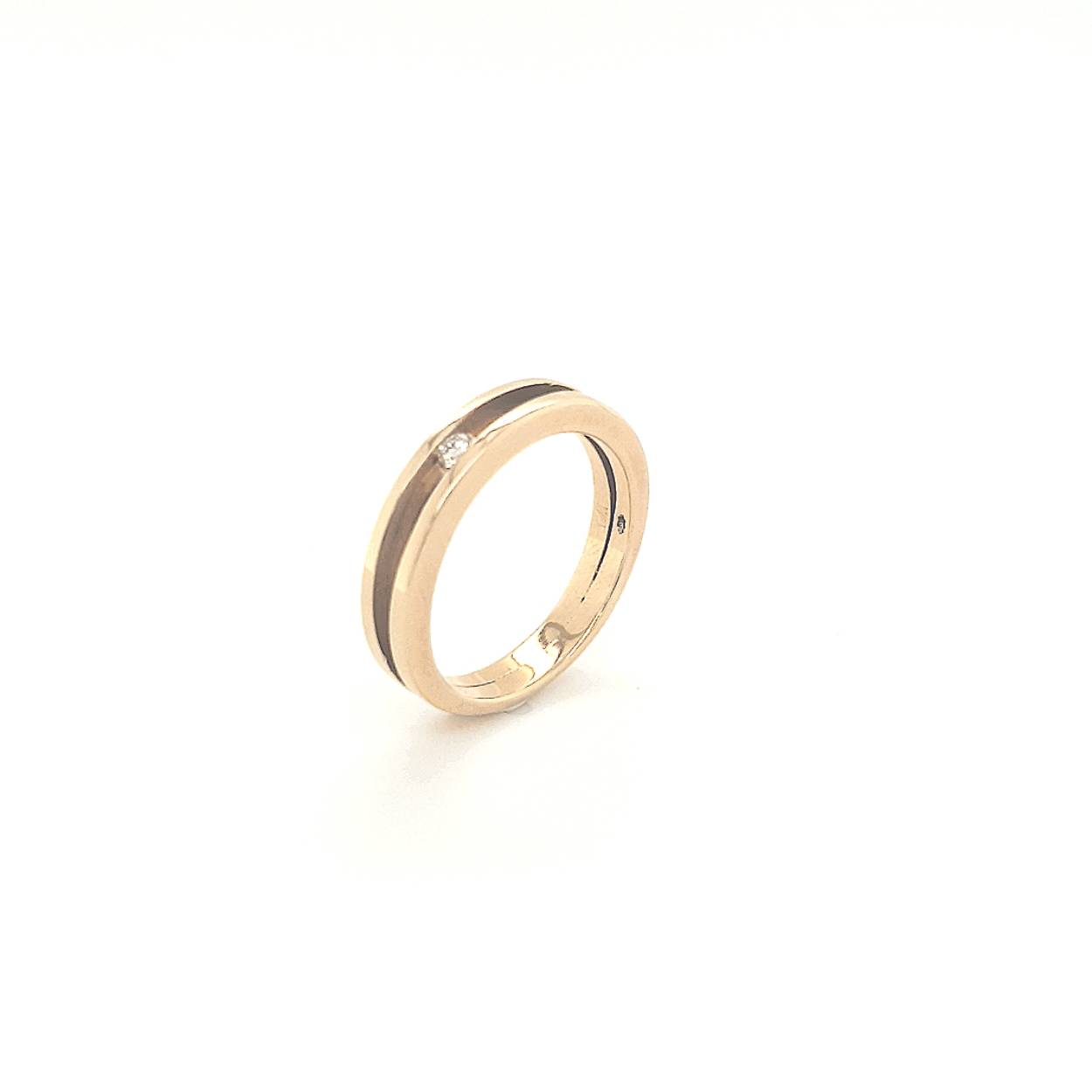 Strakke, minimalistische dubbele geelgouden ring met prachtige 0.05 karaat diamant.