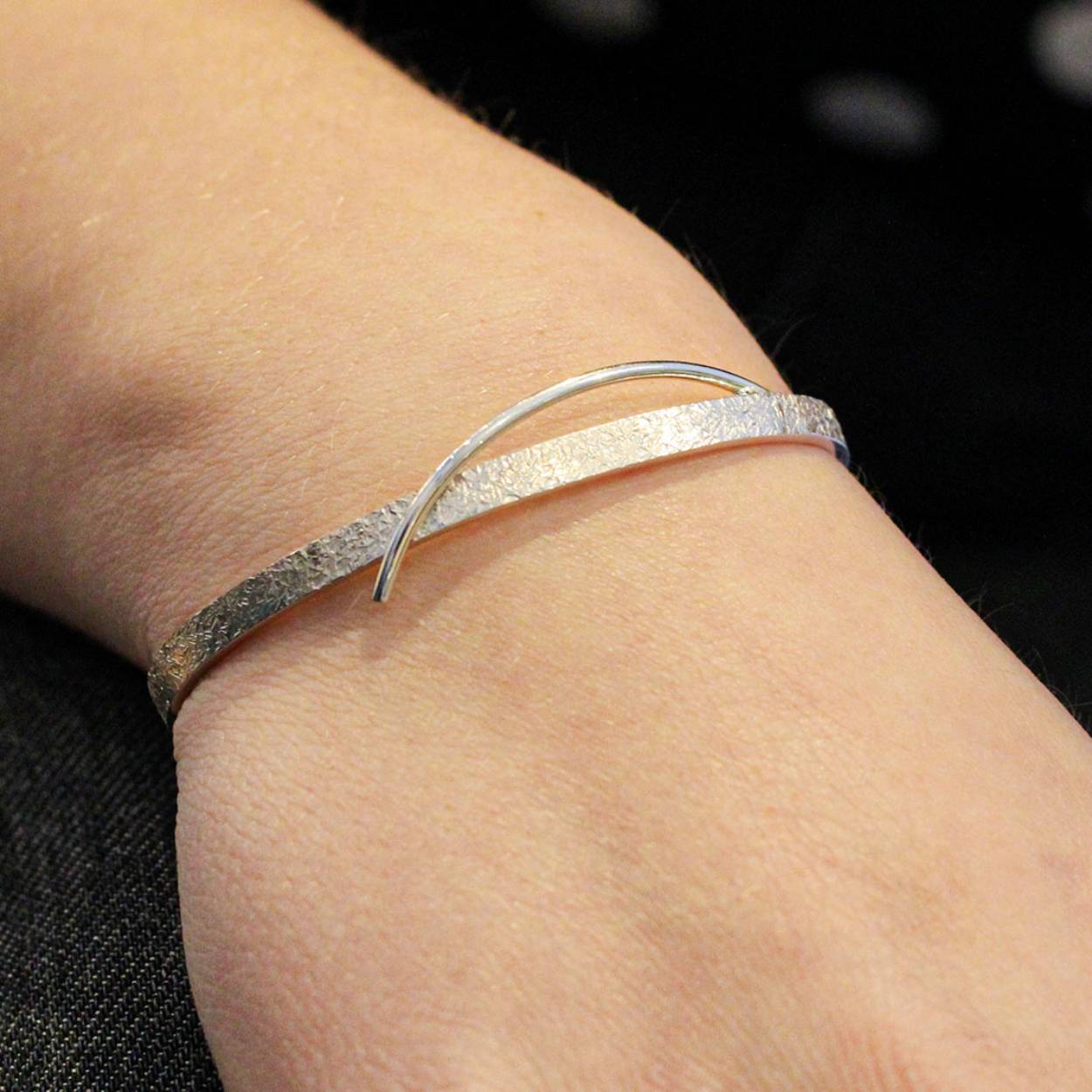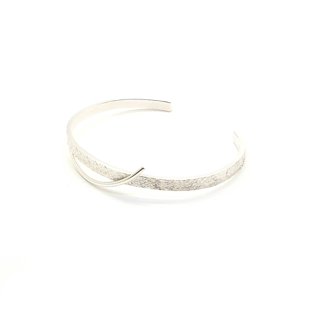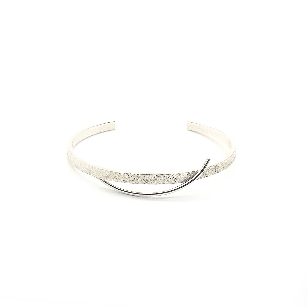 Deze verfijnde zilveren armband zal jou echt prachtig staan. De structuur creëert een contrast met de glanzende baan die omhoog wijst. Deze baan doorbreekt de strakke en rechte lijnen in de armband voor een speels effect.