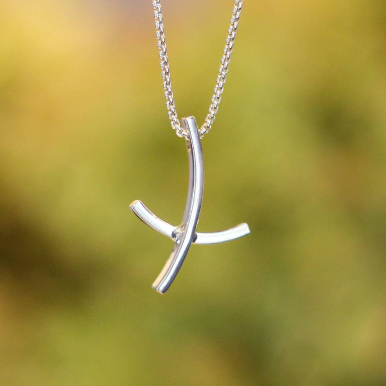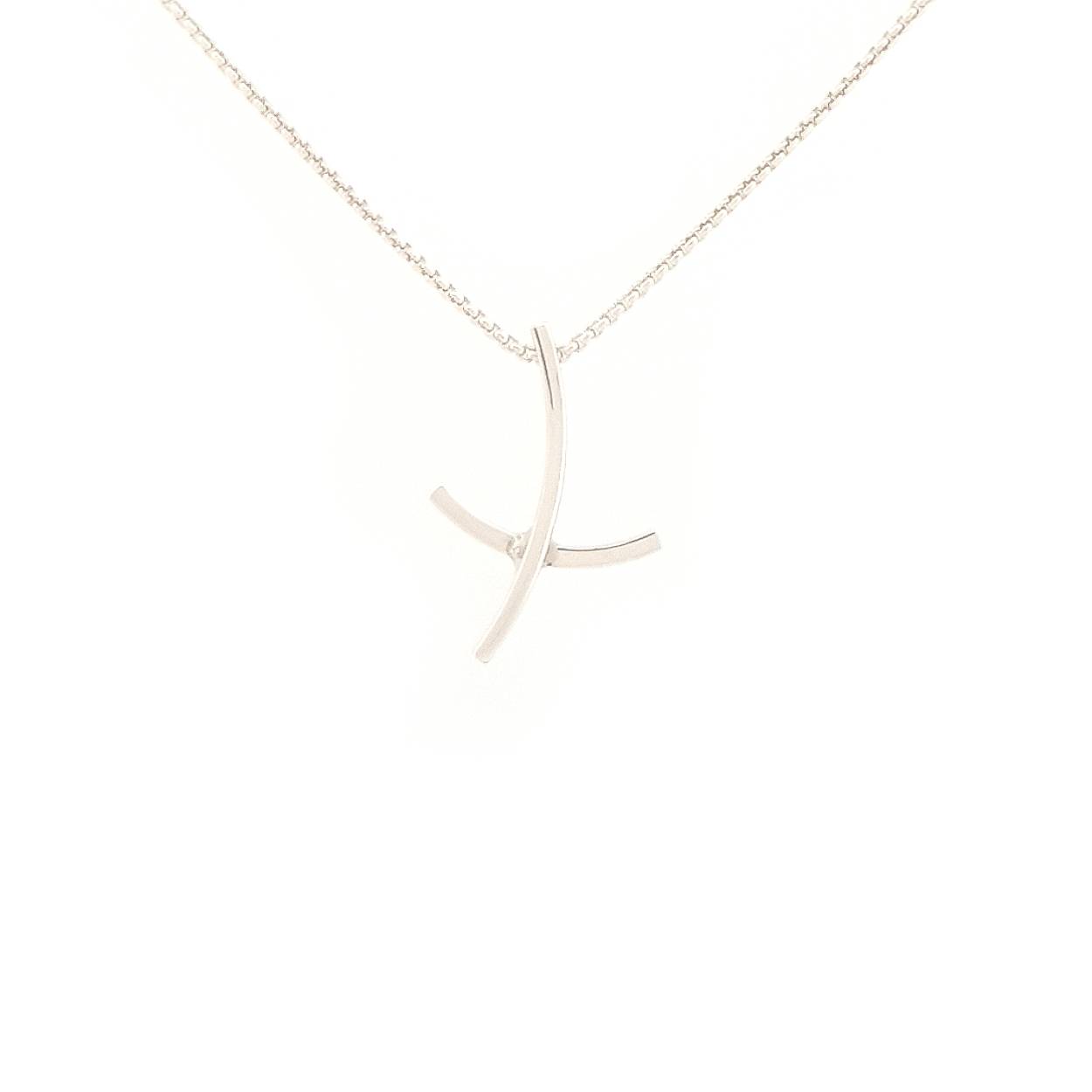 Deze twee zilveren banen staan voor twee levens die elkaar kruisen. Deze hanger is voor de echte subtiele dragers. Hoe subtiel en fijn dit ontwerp ook is, deze hanger is niet te missen in jouw sieradendoos.