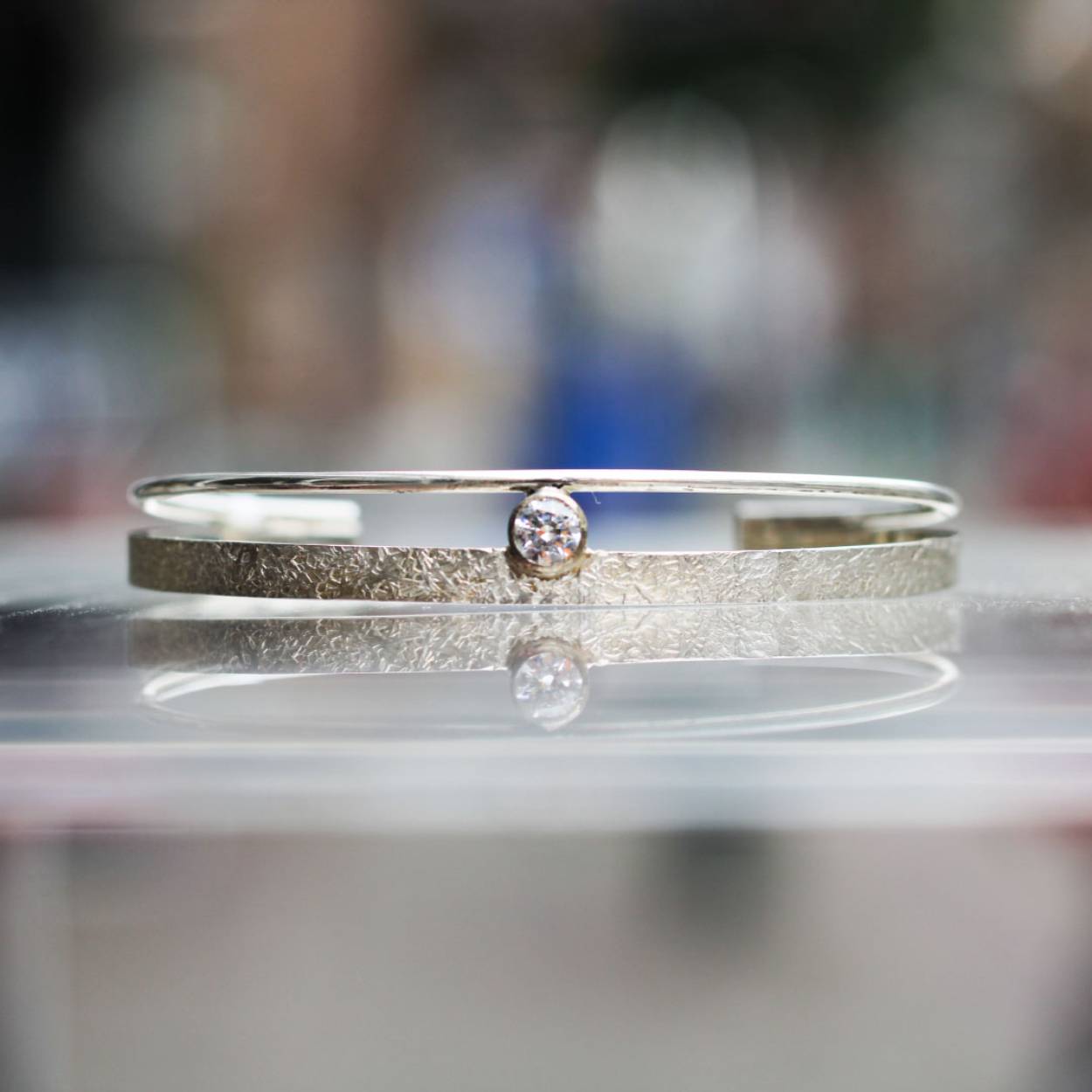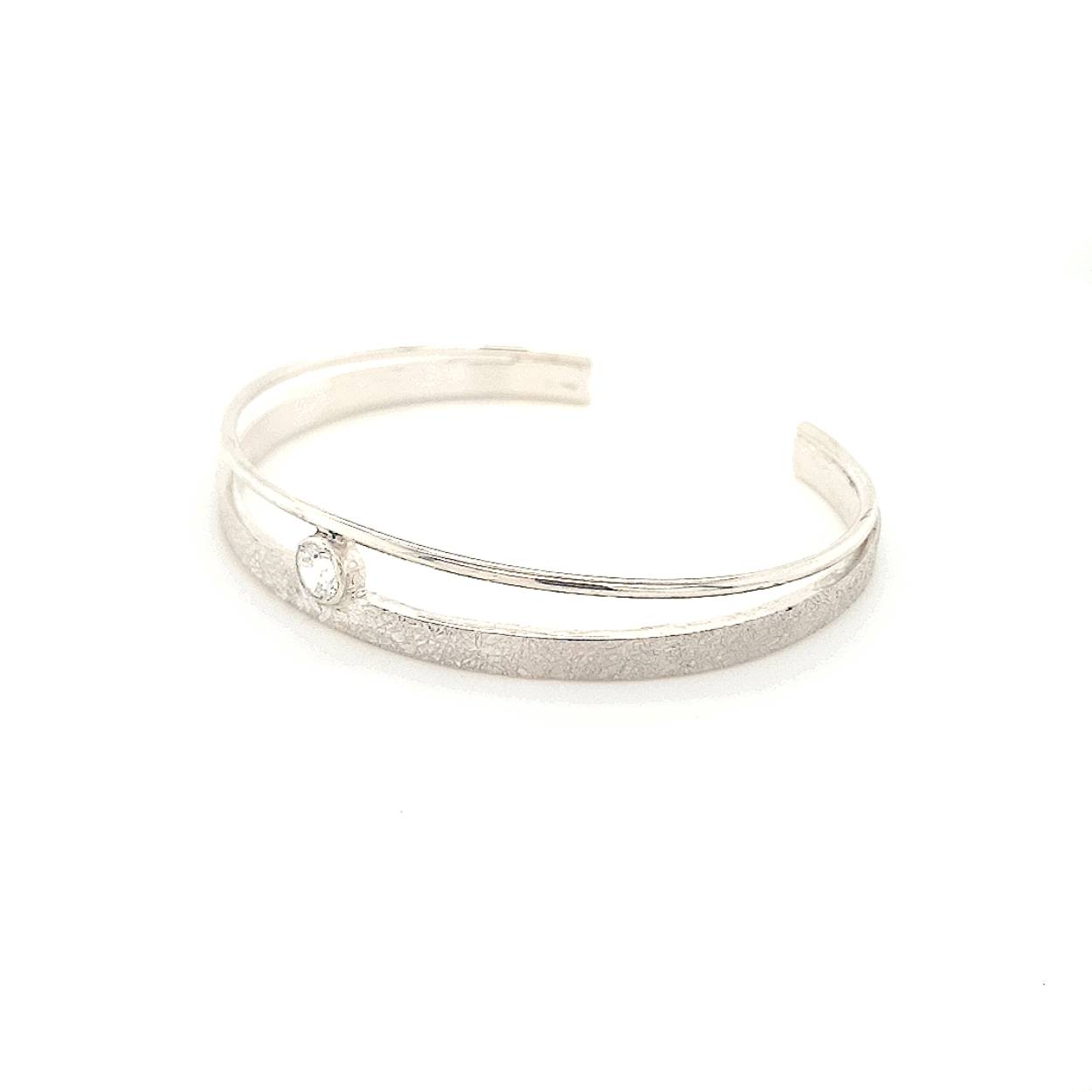 Armband zonder sluiting met een mooie structuur en zirkonia. Makkelijk om en af te doen.