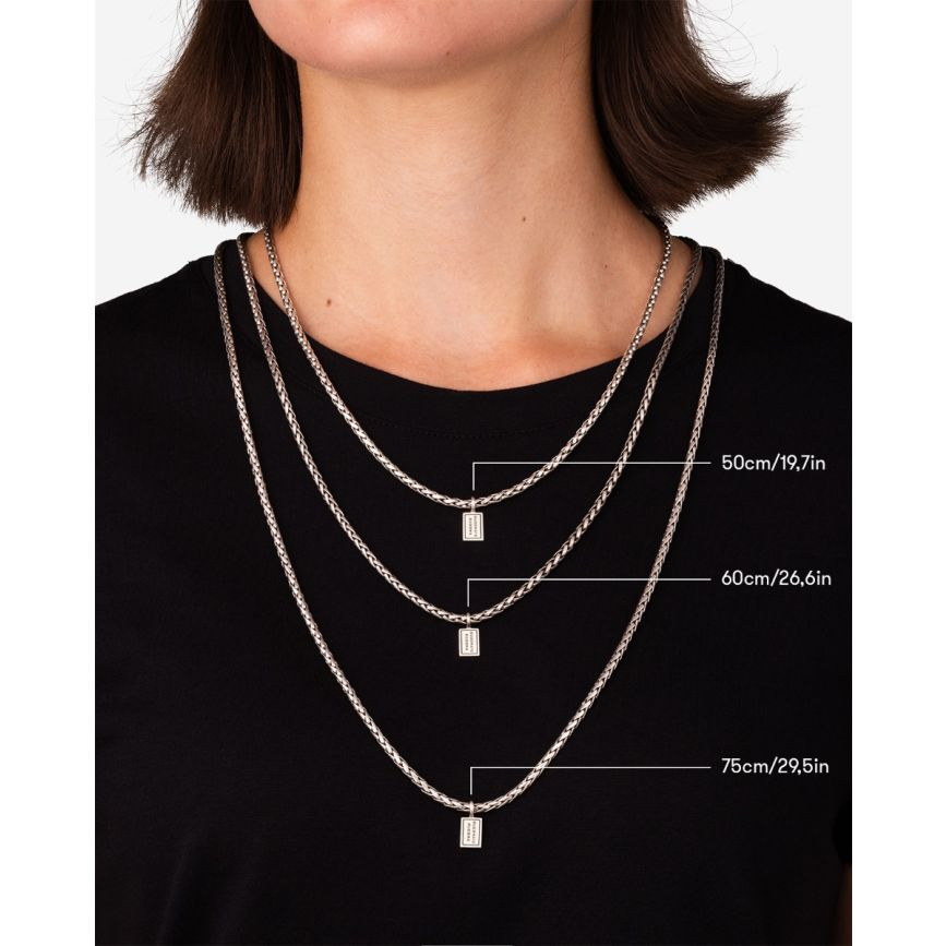De George XS-halsketting, herkenbaar aan zijn subtiele zilveren schakels, staat symbool voor puur vakmanschap en kracht. Geïnspireerd door een traditionele Balinese weeftechniek, vormt deze ketting een harmonieuze mix van traditie en tijdloosheid. Met passie gemaakt uit duurzaam 100% gerecycled zilver. De George is uiterst sterk, maar tóch bijzonder soepel. Een krachtige combinatie. Ontworpen in Amsterdam en met liefde handgemaakt in Zuidoost-Azië. Welk uniek verhaal vertel jij met deze zilveren halsketting?