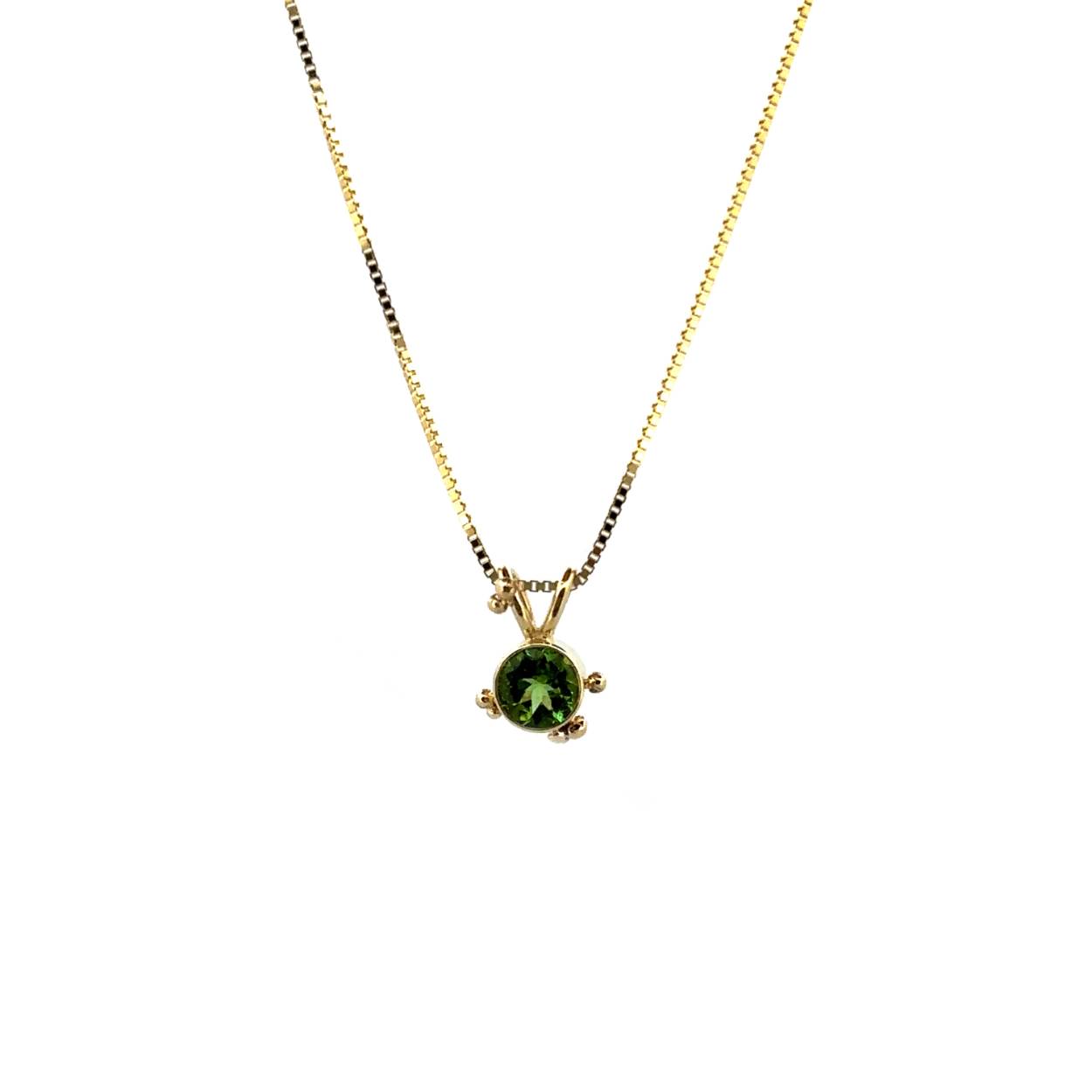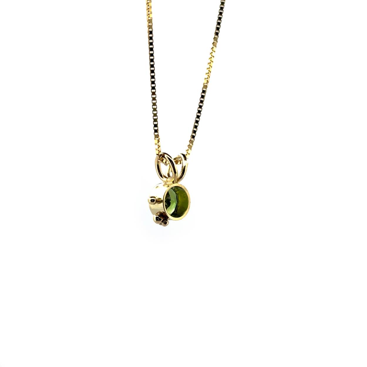 Nieuw in het atelier hebben wij onze gouden hanger met een peridot. Het minimalistische design zorgt ervoor dat je deze ketting bij elke look kan dragen. Deze prachtige peridot heeft een mooie helder groene kleur. Door de geelgouden zetting met de kleine bolletjes wordt dit sieraad een eyecatcher van jouw look. Deze hanger hoort bij een set met oorstekers en een ring.