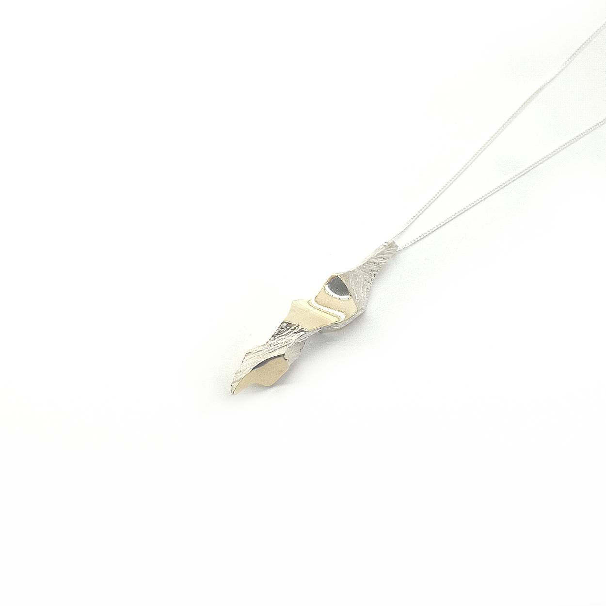 Onze favoriete hanger uit de Arctic collectie heeft nu een gouden randje. De vlakke delen van de hanger hebben een gouden toevoeging gekregen. De combinatie van zilver en goud maakt deze hanger makkelijk draagbaar met al jouw eigen sieraden.