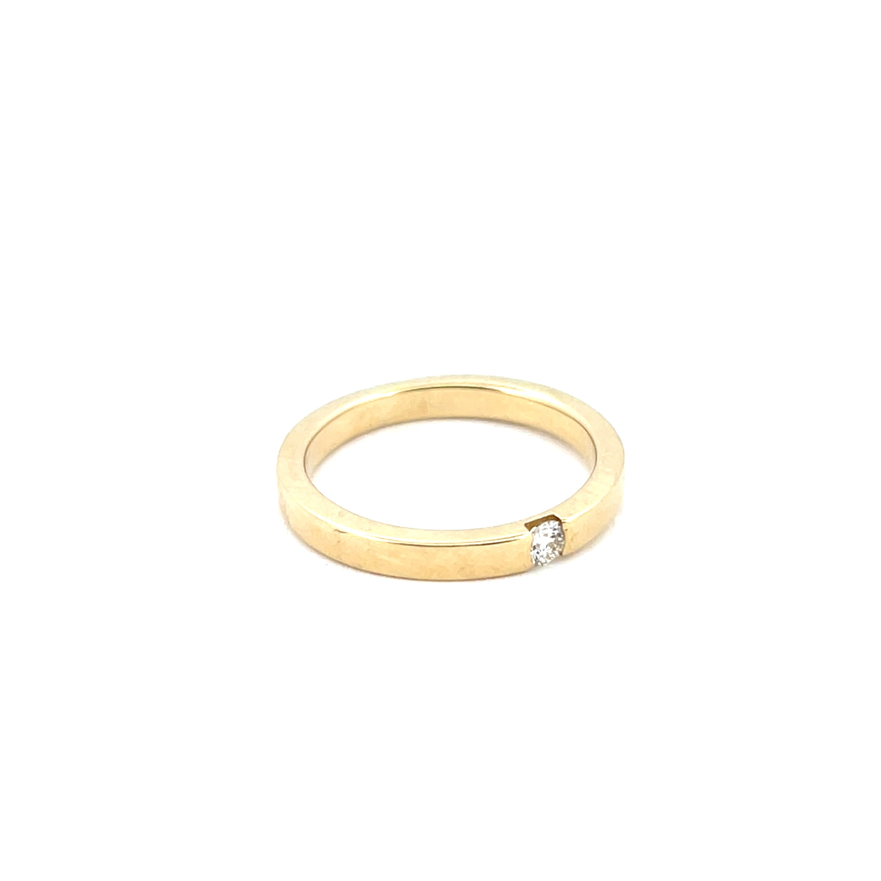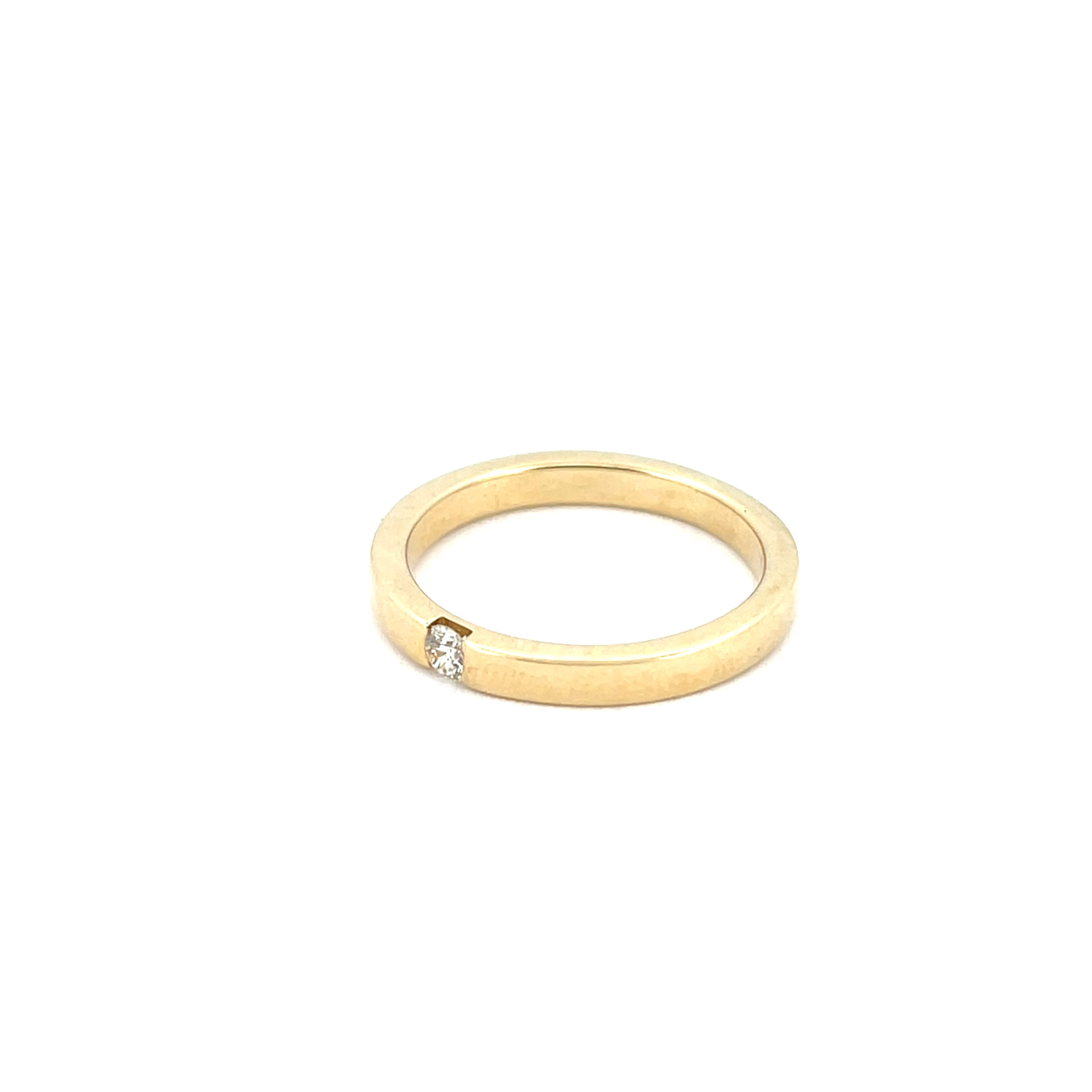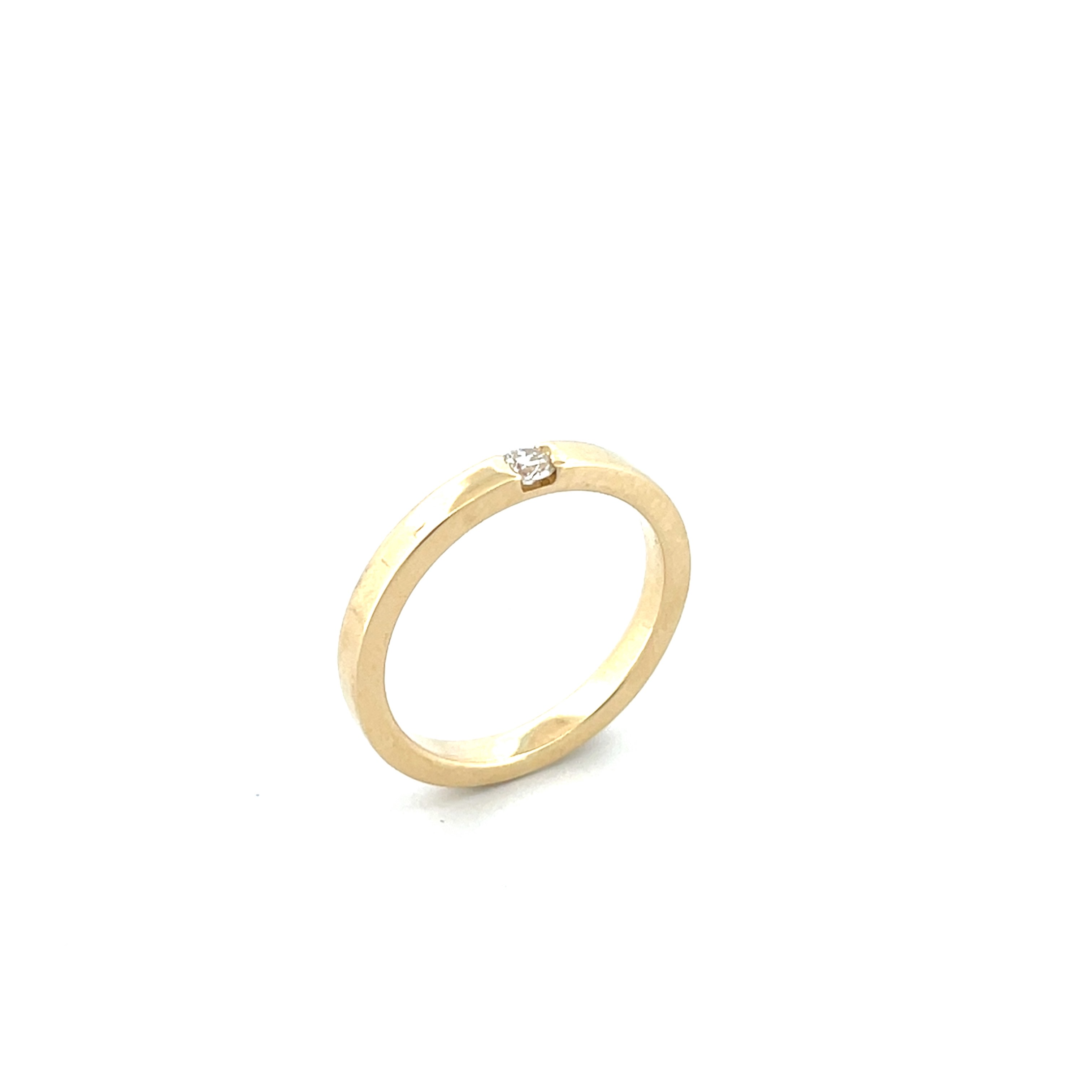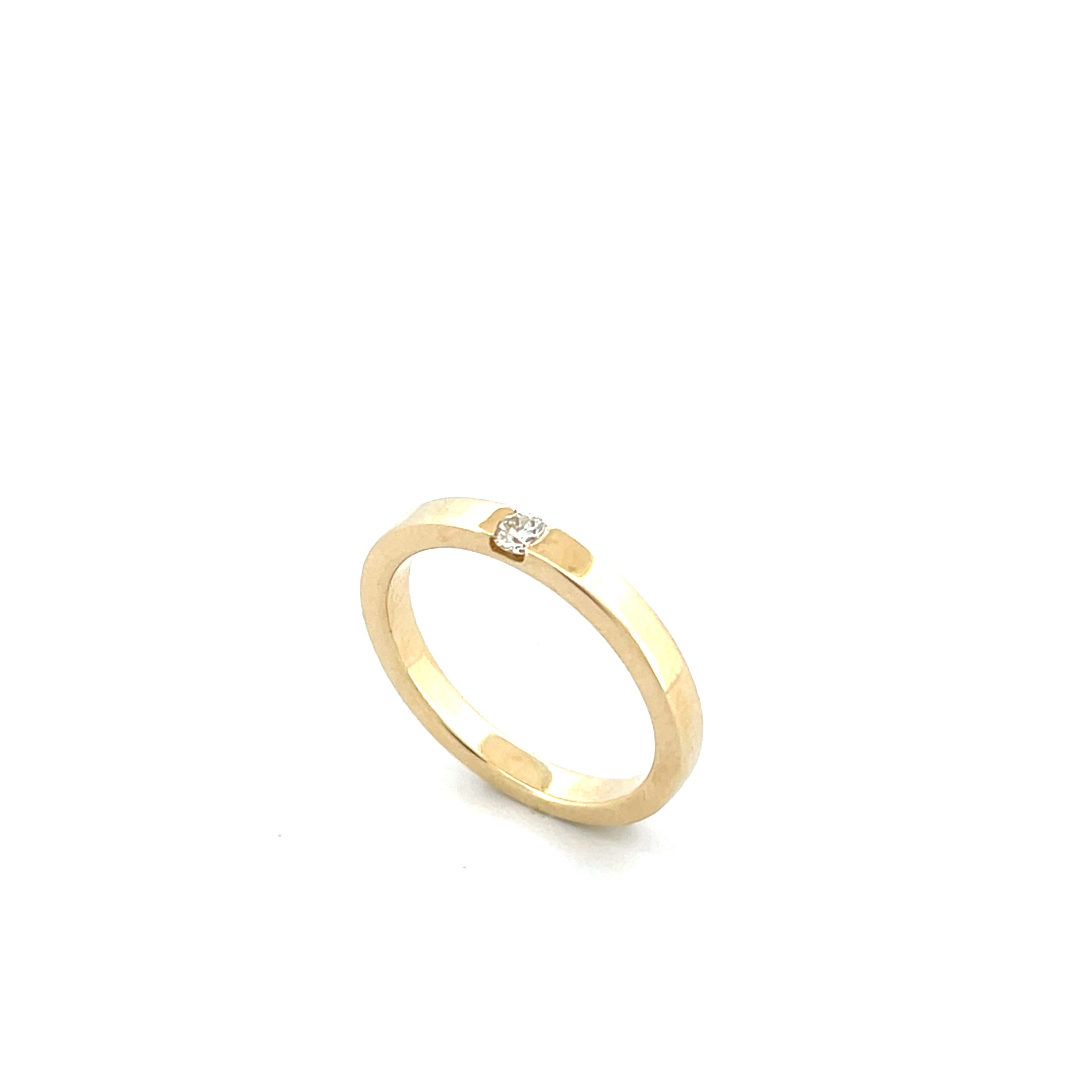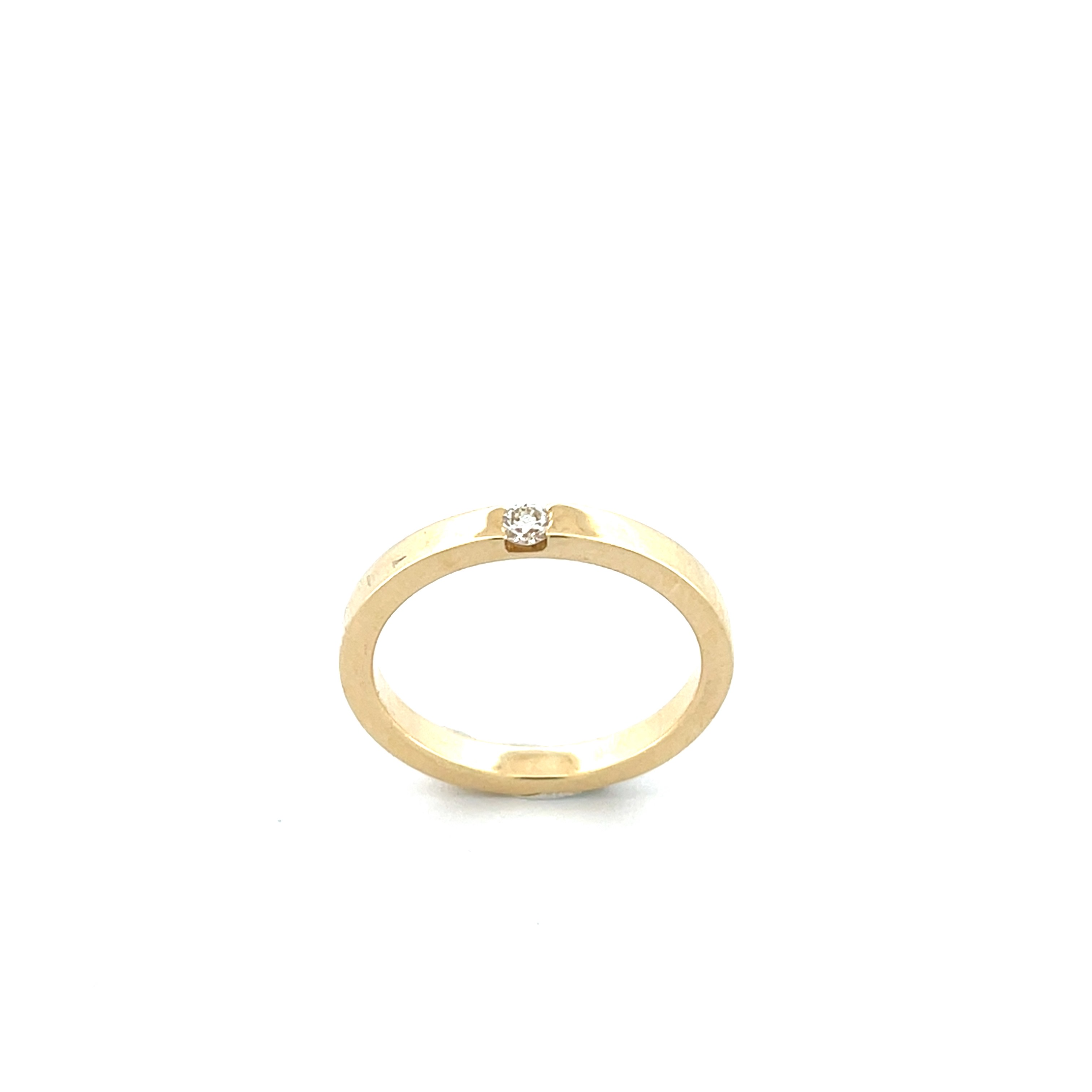 Makkelijk te combineren klassieke ring van 14 karaat geelgoud met een diamant. Past bij elke stijl en is mooi bij een andere ring aan te schuiven.
