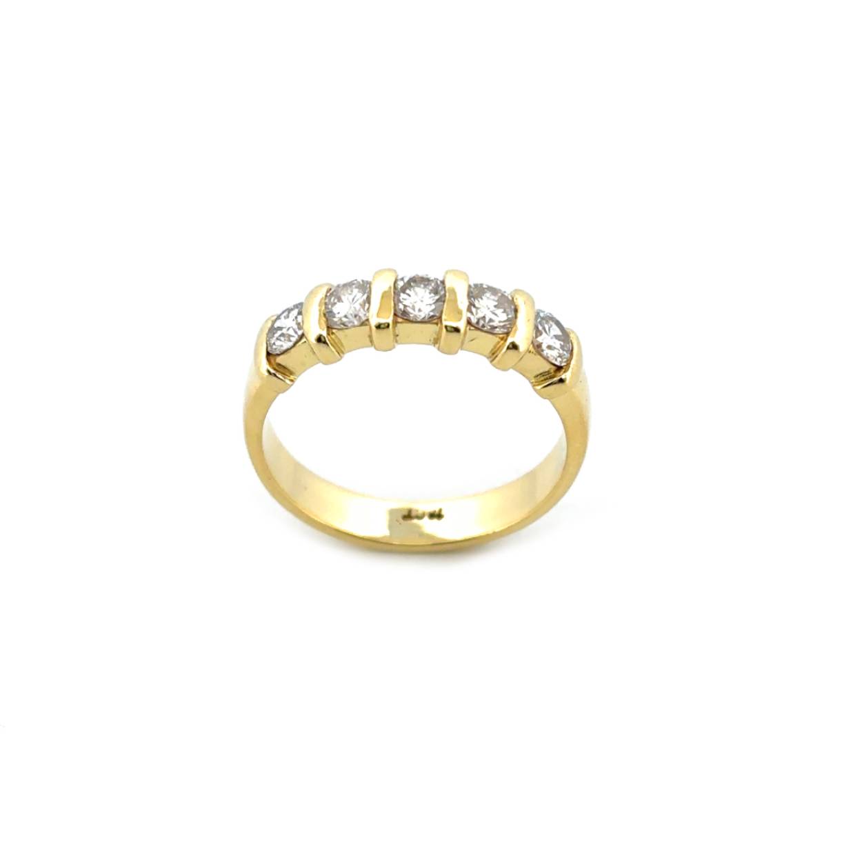 Zeer mooie en zware ring van 18 karaat goud met 5 prachtige diamanten van 0.23 ct per stuk.