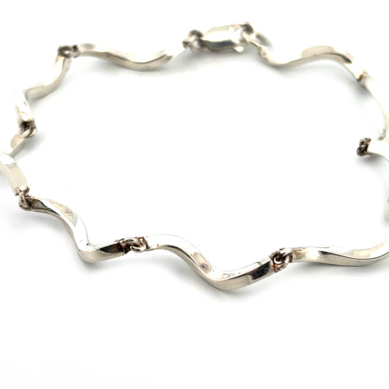 Het bijzondere lijnenspel van deze armband maakt haar erg bijzonder. De organische vormen vloeien om je pols zoals de rivier vloeit door het landschap.