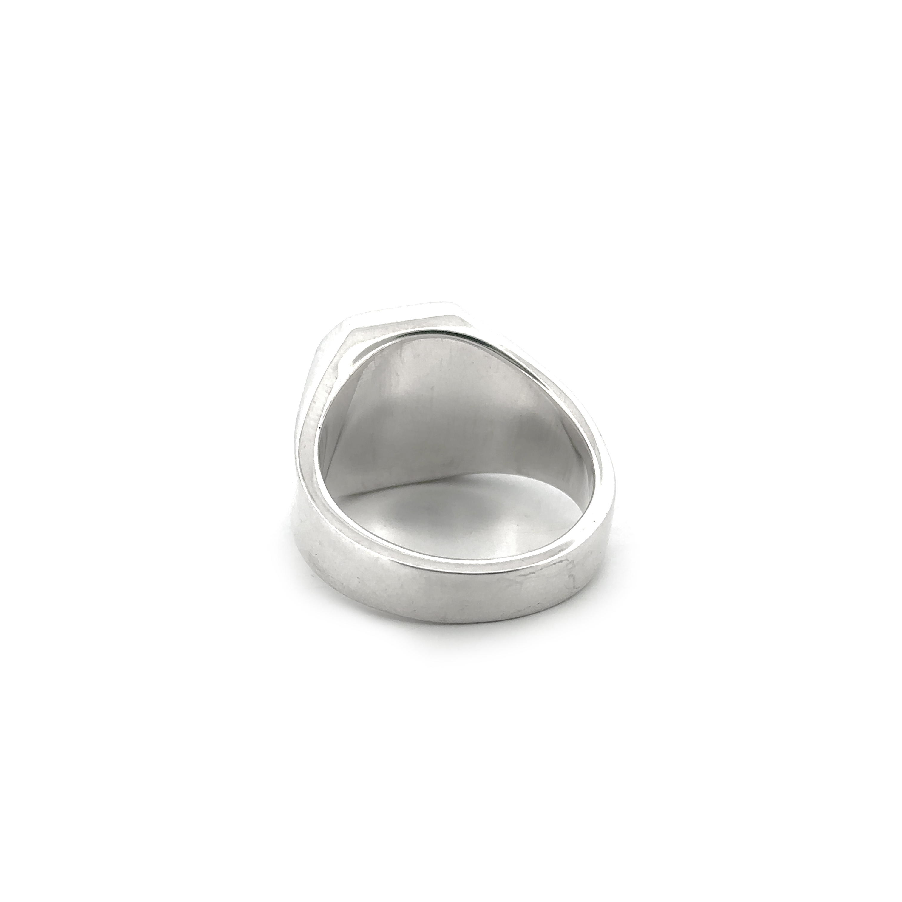 Deze zilveren zegelring is van massief zilver met een glanzende afwerking.  Een tijdloze toevoeging aan je sieradencollectie.