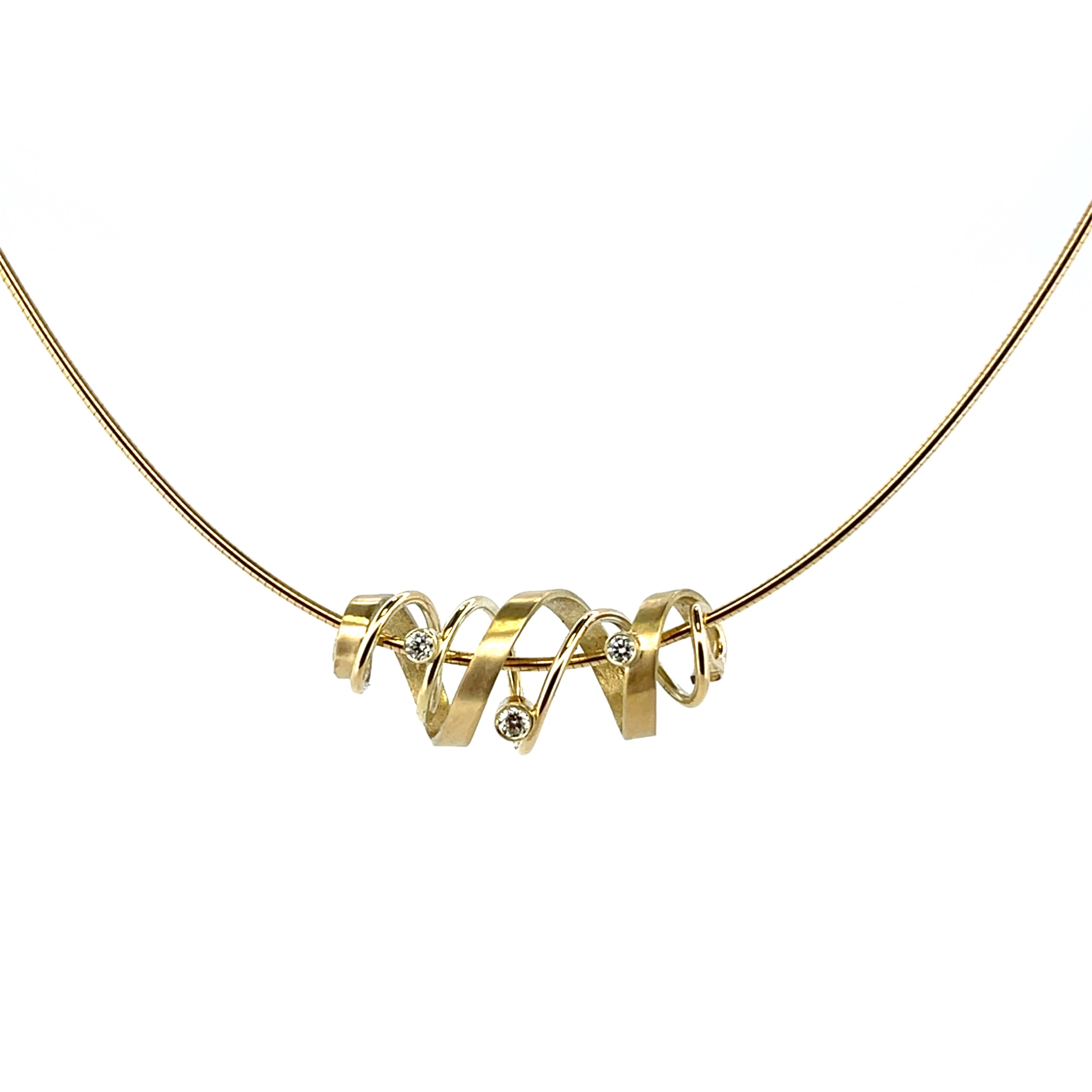 Sierlijke verfijnde draden laten deze ontwerpen voor zichzelf spreken. De twee banen van goud vormen samen een prachtig en open geheel. Met een letterlijke twist zijn deze sieraden goed draagbaar en makkelijk te combineren. Een energieke twist van sierlijkheid die jou laat stralen. Elk sieraad wordt met de hand gemaakt in ons eigen atelier en ontstaat spontaan op gevoel. Jouw Twist is dus altijd uniek.