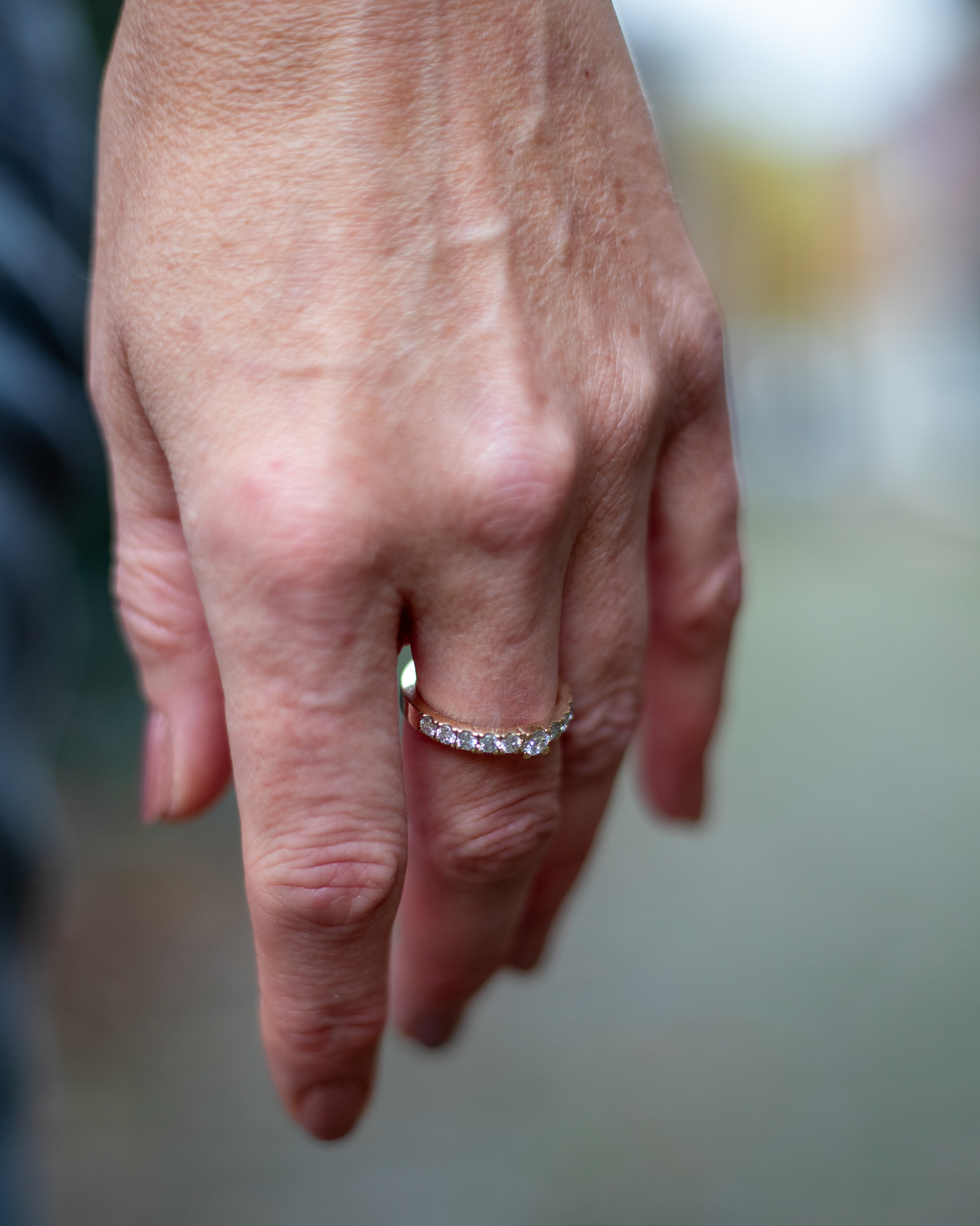 Makkelijk te combineren klassieke ring van 14 karaat goud met 11x een moissaniet. Past bij elke stijl en is mooi bij een andere ring aan te schuiven.