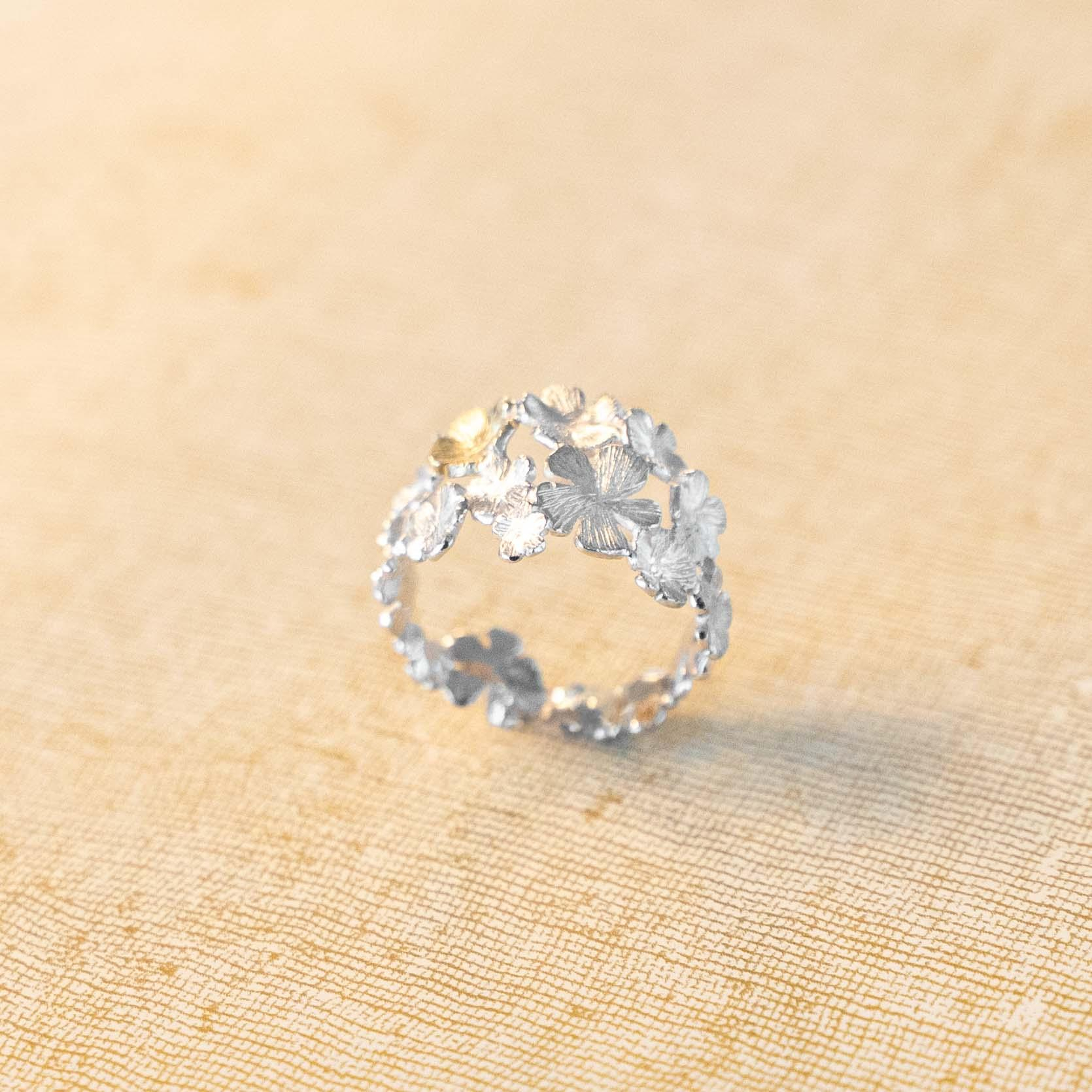 Een bijzondere ring uit een hele collectie speciaal ontworpen sieraden met vergeet me nietjes. Een klein vergeet-mij-nietje heeft een sterke symbolische waarde. De bloem staat voor trouw en oneindige liefde. Met het dragen of geven van deze gouden of zilveren sieraden geeft u een extra betekenis aan uw liefde.