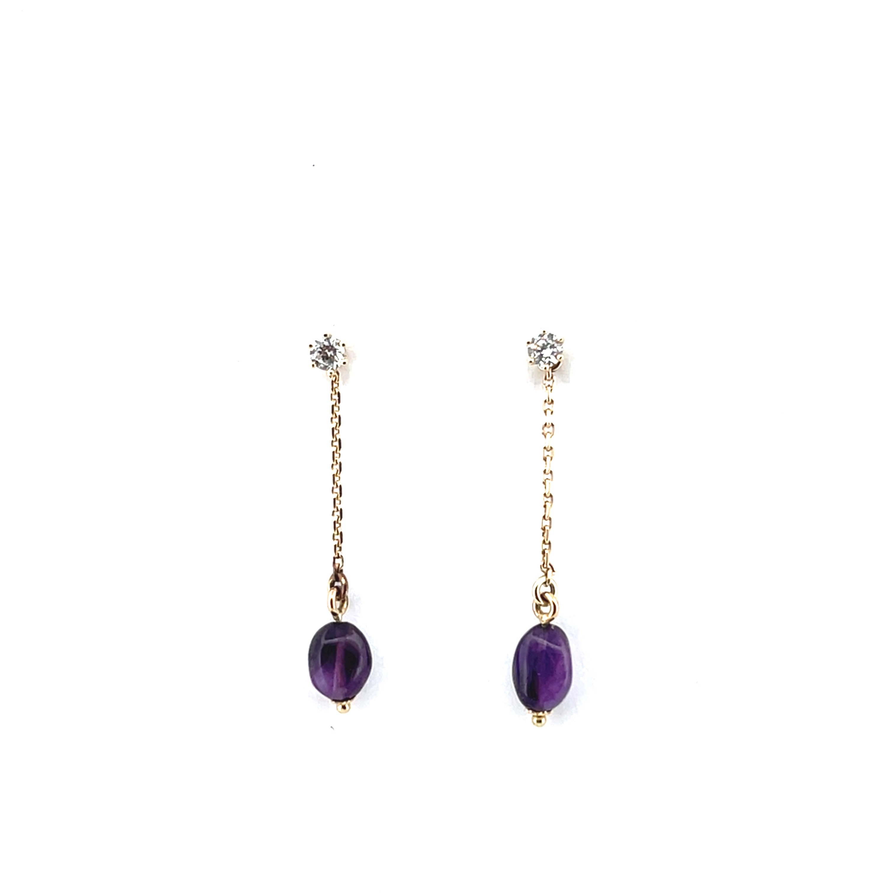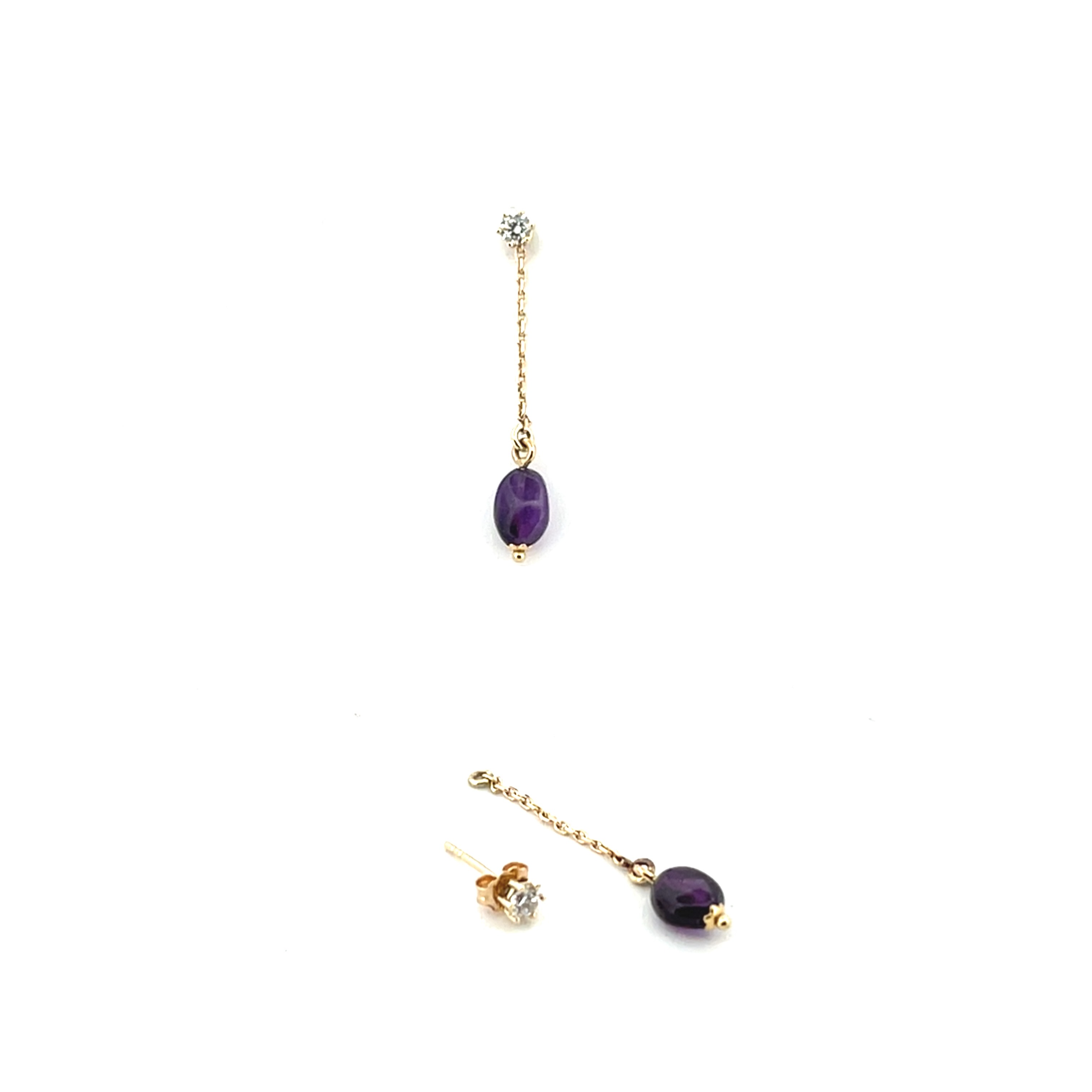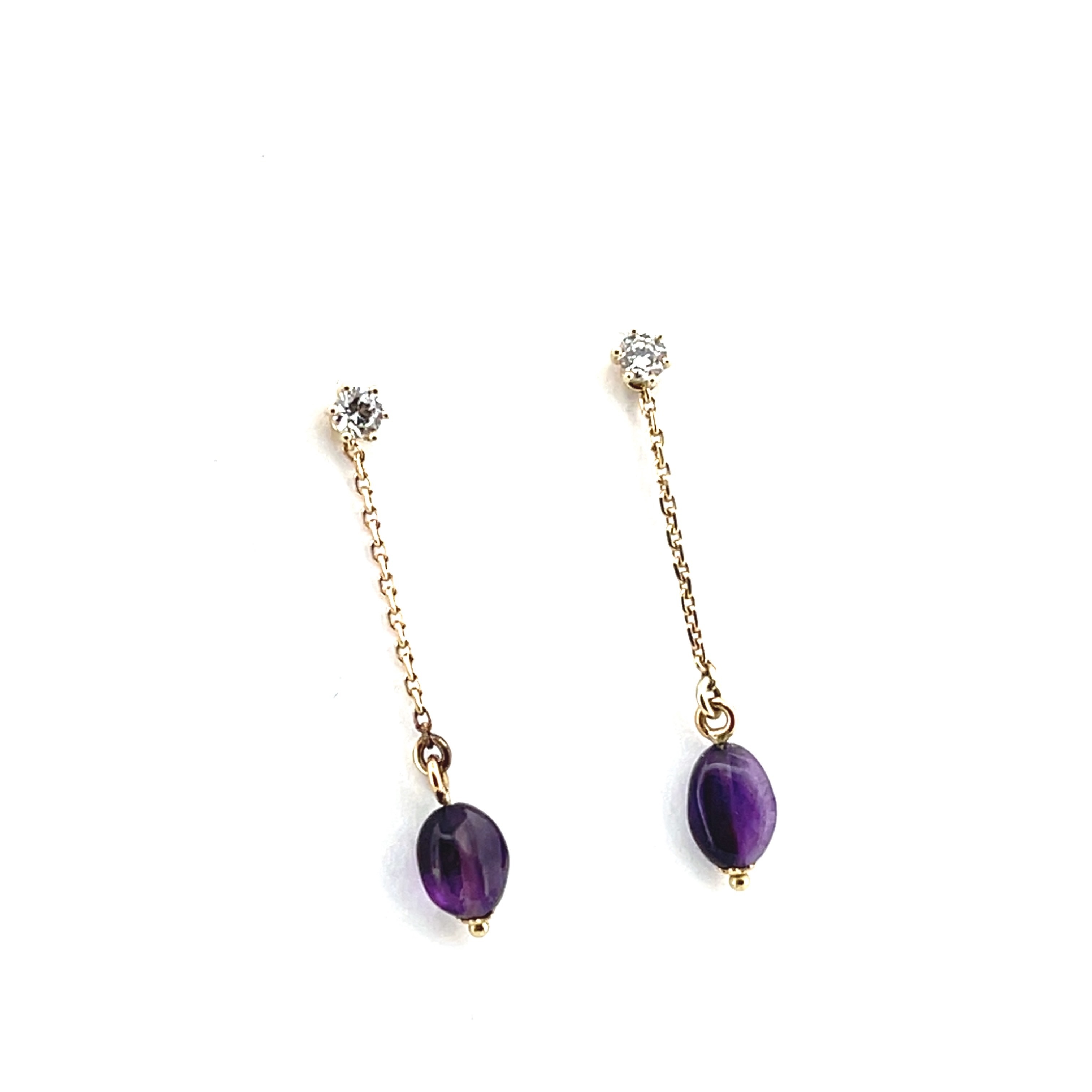 Deze sprookjesachtige hangers met los bungelende paarse edelsteen vangen de essentie van het magische in elk detail.