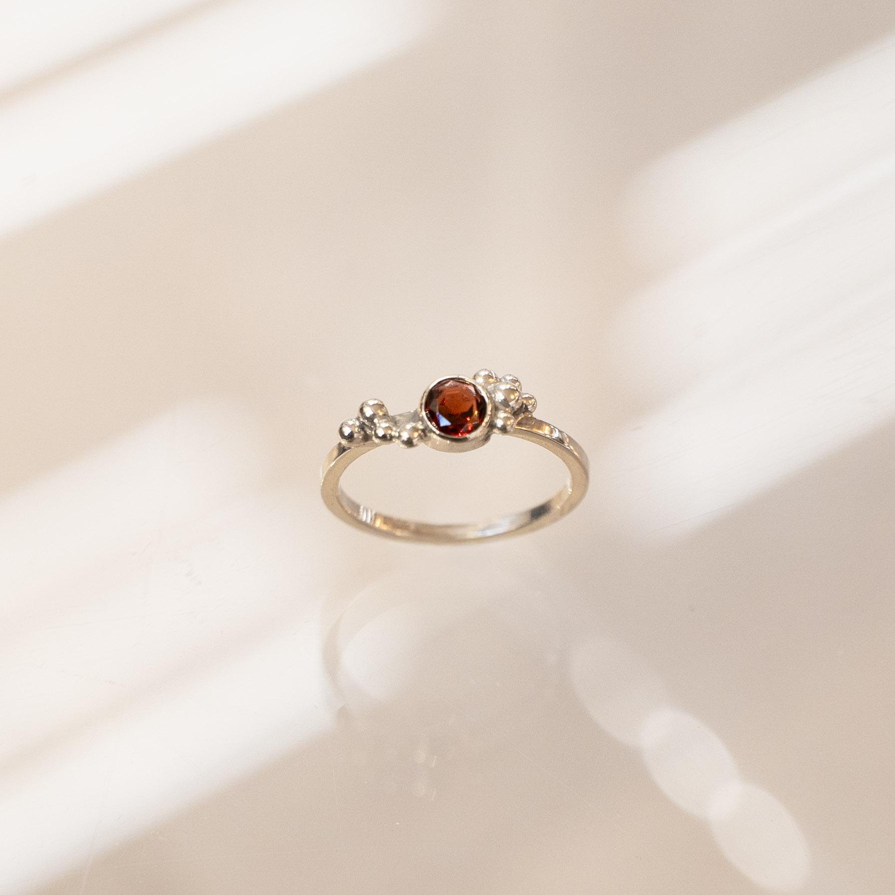Zilveren ring met granaat.