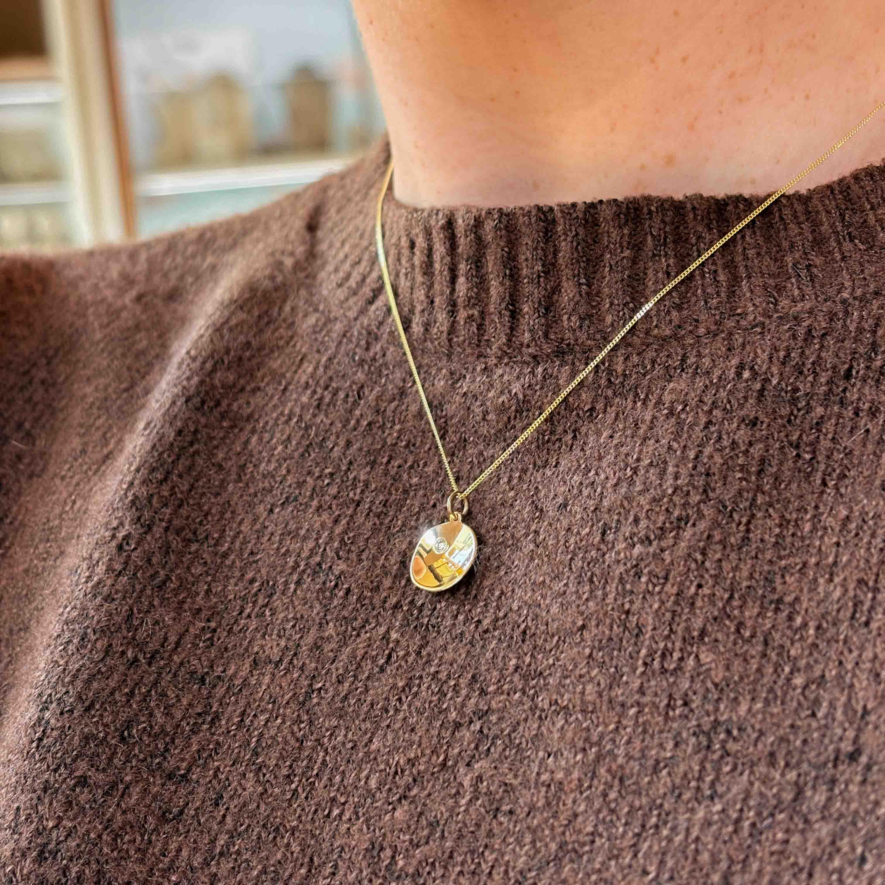Soms vind je iets bijzonders op het juiste moment. Lichtvondst vangt dat gevoel in een elegante gouden hanger met een stralende diamant als middelpunt. De combinatie van het warme goud en de stralende glans van de diamant geeft dit sieraad een pure, serene uitstraling. Een klein geluksmoment om elke dag te dragen.