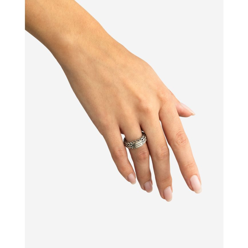 De Ellen Ring is een verfijnde fusie van subtiliteit en karakter, die onderdeel is van de populaire Ellen-collectie - een van de meest subtiele schakels in onze collectie. Deze ring, met zijn kenmerkende geweven ontwerp, staat voor verbinding. Elk facet is met precisie vervaardigd, waardoor het pure vakmanschap van Buddha to Buddha tot leven komen. Gemaakt van gerecycled zilver, is deze ring niet alleen een tijdloos sieraad, maar ook een belichaming van duurzaamheid en authenticiteit. Ontstaan in de creatieve geest van Amsterdam en met zorg handgemaakt in Zuidoost-Azië, is de Ellen Small Ring zowel elegant als veelzijdig. Ga jij het leven vieren door jezelf of iemand anders te trakteren op dit krachtige sieraad?