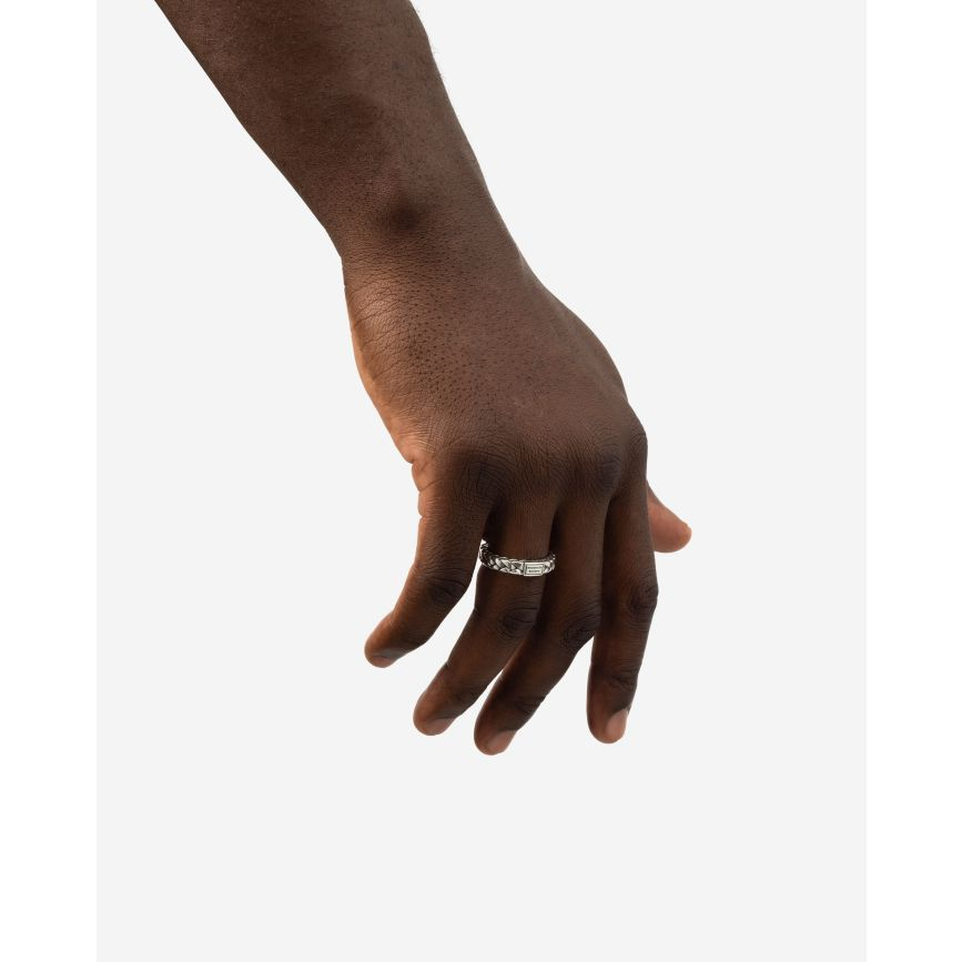 De George Small Ring is een eerbetoon aan verfijnd vakmanschap en gedetailleerd design. Deze ring, met zijn kenmerkende schakelontwerp, is gebaseerd op een traditionele Balinese weeftechniek. Elk detail van de ring is zorgvuldig vormgegeven, waarbij de kunst van het handwerk en traditioneel ontwerp tot uiting komt. Gemaakt van uit gerecycled zilver, is de George Small Ring niet zomaar een sieraad, maar ook een statement van duurzaamheid, vakmanschap en kwaliteit. Ontworpen in Amsterdam en met liefde handgemaakt in Zuidoost-Azië. Draag het als een viering van jouw unieke stijl en de bijzondere momenten in het leven. Met wie of wat verbind jij jezelf door dit sieraad te dragen?