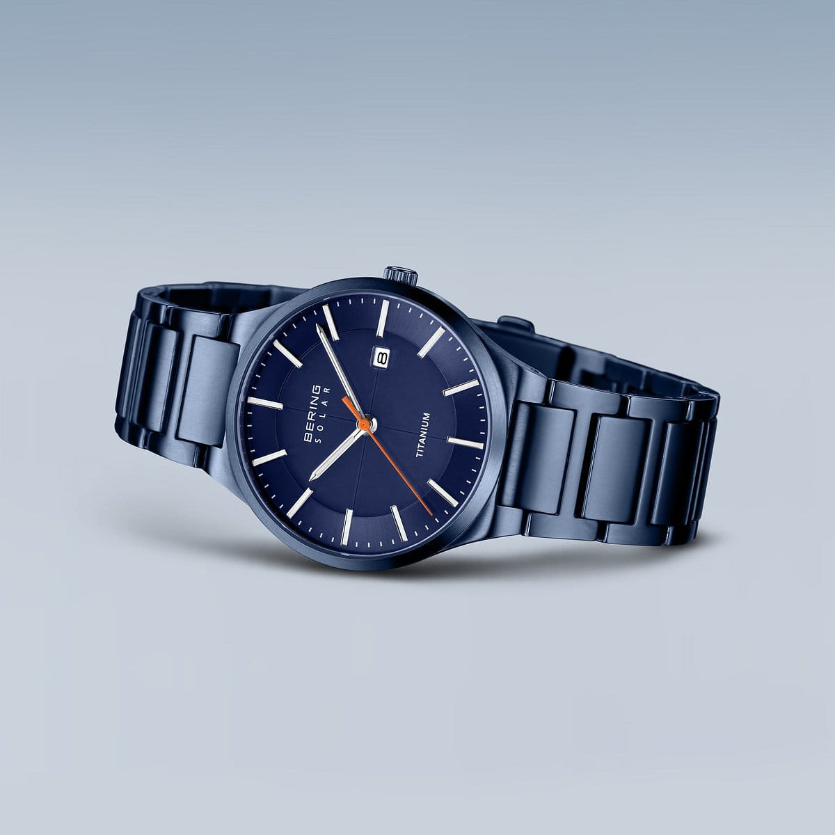 De BERING 15239-797 verenigt innovatieve zonne-energie met minimalistisch design. De diepblauwe wijzerplaat met zilverkleurige indexen en opvallende oranje secondewijzer straalt rust én energie uit. Het woord “SOLAR” is geen detail, maar een statement: deze horloge laadt op via elke lichtbron – batterijen vervangen is verleden tijd.