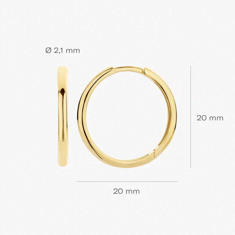 Prachtig in hun eenvoud zijn deze klassieke, gladde, ronde 14k geelgouden oorringen. Ze hebben een doorsnede van 1.9 mm en zijn mooi te combineren met andere (oor)sieraden uit onze collectie.