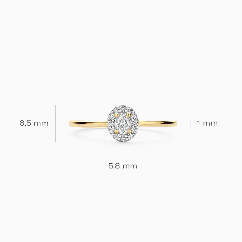 Meerdere lab-diamonds in entourage-zetting sieren deze stijlvolle glinsterende ring. Het totale karaatgewicht van de diamanten is 0,20, de doorsnede van de ring is 1 mm. Prachtig op zichzelf of gecombineerd met andere sieraden met lab-diamonds uit onze collectie.