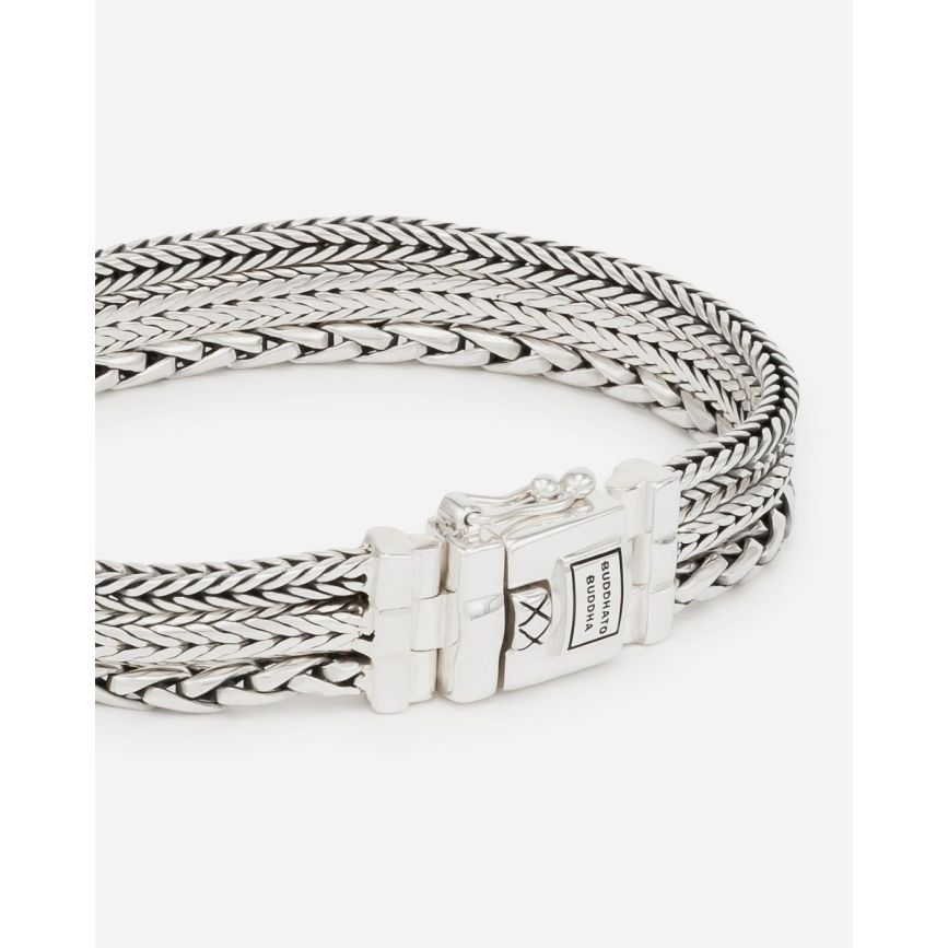 De Triple Mini Armband is een krachtige expressie van de essentie van ons merk- een viering van de kracht van verbinding. Deze armband verbindt drie verschillende armbanden, de populaire Barbara, Ellen en George, in één verfijnde creatie. Elke individuele band is zorgvuldig met de hand in elkaar geweven en daarna verbonden met de andere banden doormiddel van ons iconische slot. Vervaardigd in gerecycled zilver, straalt deze armband een tijdloze authenticiteit en kwaliteit uit. Ontworpen in Amsterdam, met de hand gemaakt in Zuid-Oost Azië. Draag het als een symbool van de harmonie in jouw leven.