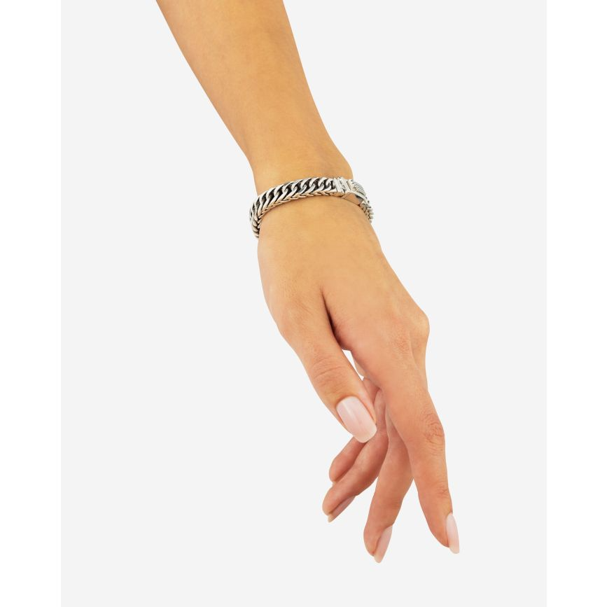 De Esther XS armband is een van de bekendste armbanden van onze iconische sieraden collectiel. De stoere gevlochten schakel maakt deze sterling zilveren armband tot een echte must have! De schakels zijn geoxideerd waardoor de binnenkant van de schakel donker is. Ontworpen in Amsterdam en met precisie handgemaakt uit gerecycled zilver in Zuid-Oost Azië. De Esther XS is niet zomaar een sieraad; het is een stukje kunst dat je draagt als symbool van jouw unieke pad.