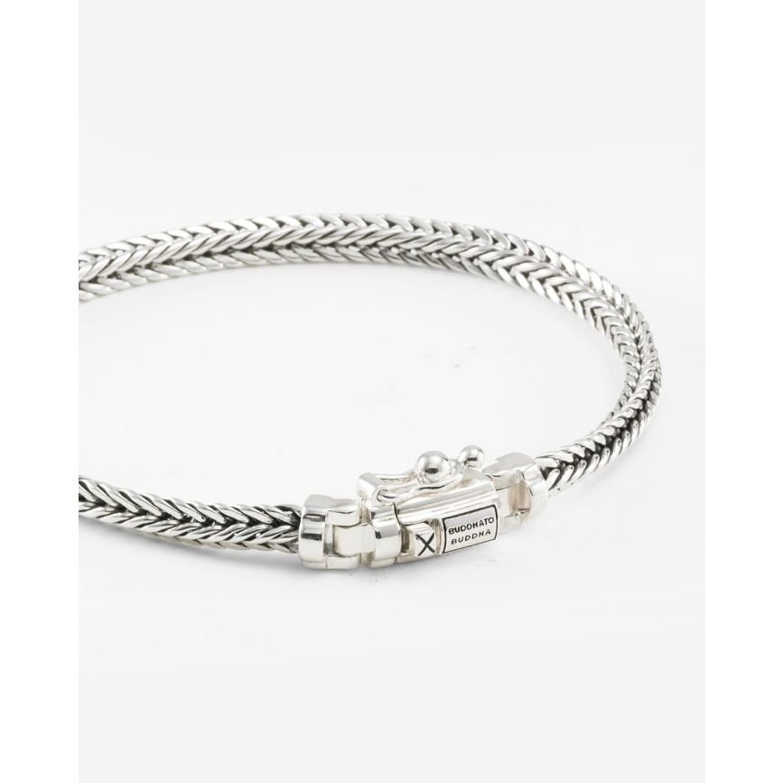 De Armband Nurul Mini Zilver is een verfijnde versie van de iconische Nurul structuur. De kleinere schakels en het praktische bakslot maken dit ontwerp zowel elegant als stoer. De subtiele afwerking geeft de armband een tijdloze uitstraling die bij elke stijl past. Ontworpen in Amsterdam en handgemaakt in Zuid-Oost Azië van 100% gerecycled 925 sterling zilver.