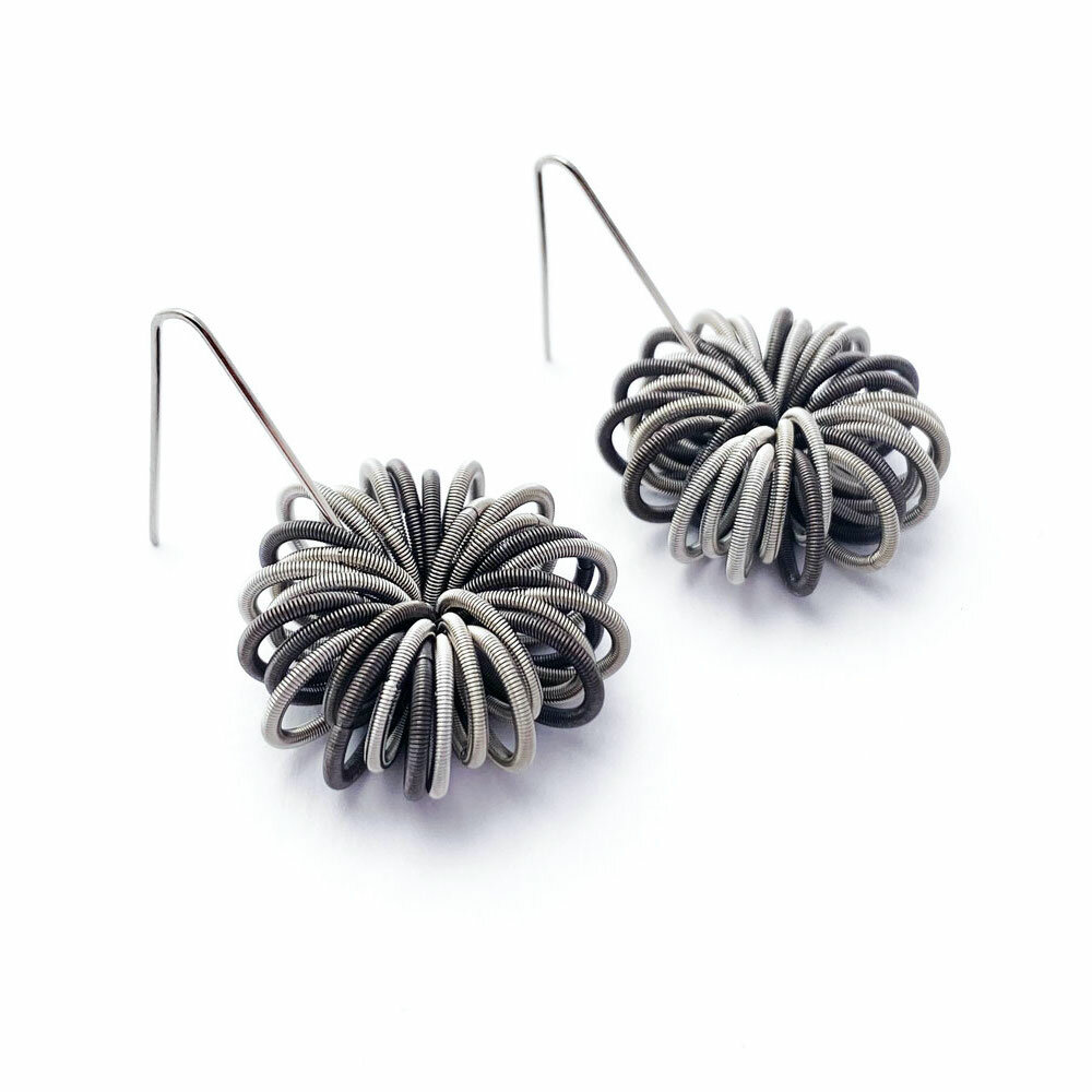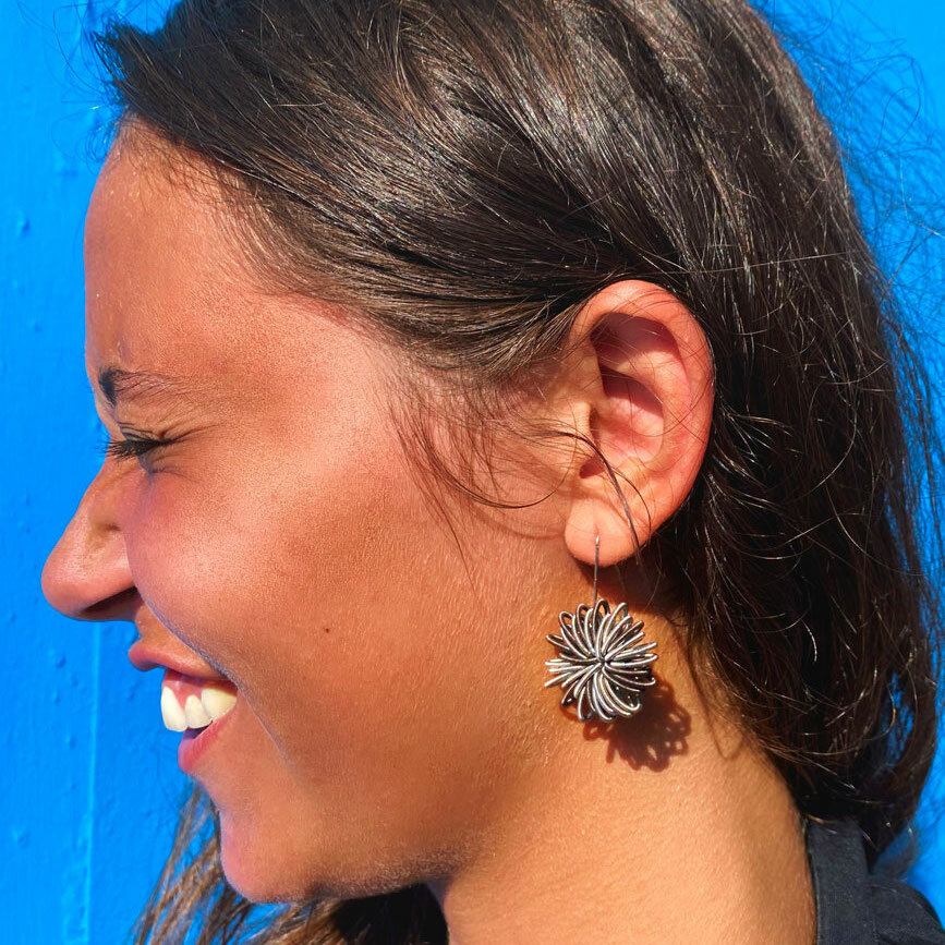 De ontwerpster van de sieraden, Tiziana Redavid, gebruikt afrikaans design als inspiratiebron. Bij deze oorbellen zijn gebruik gemaakt van zilver en donker zilver kleuren.