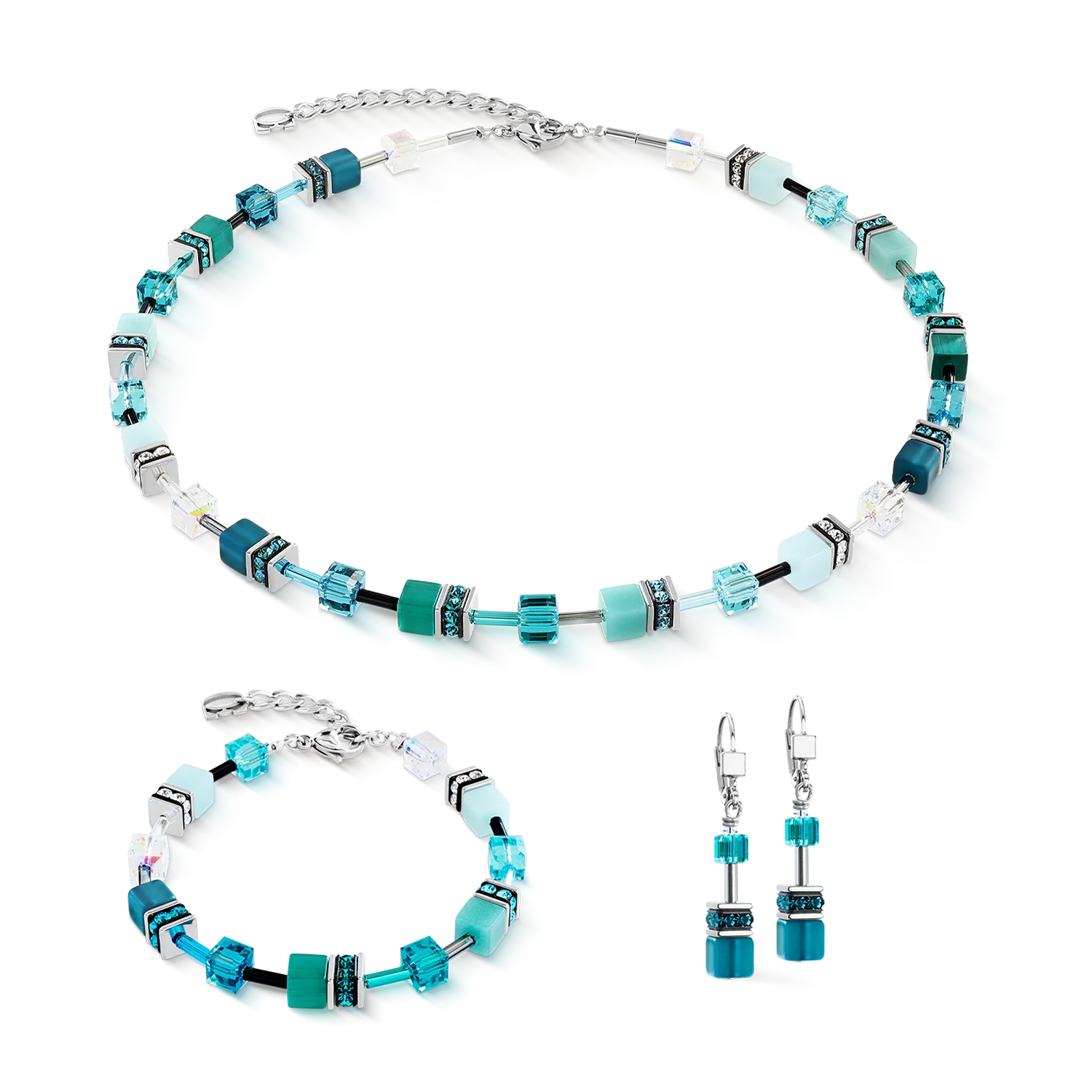 Fris, modern en onmiskenbaar: de GeoCUBE® Iconic Necklace Teal Silver toont de trendkleur van het jaar: "Transformative Teal". De levendige mix van blauw en groen symboliseert vernieuwing, energie en eigentijdse elegantie, versterkt door koele zilveren accenten voor een opvallend designstatement.