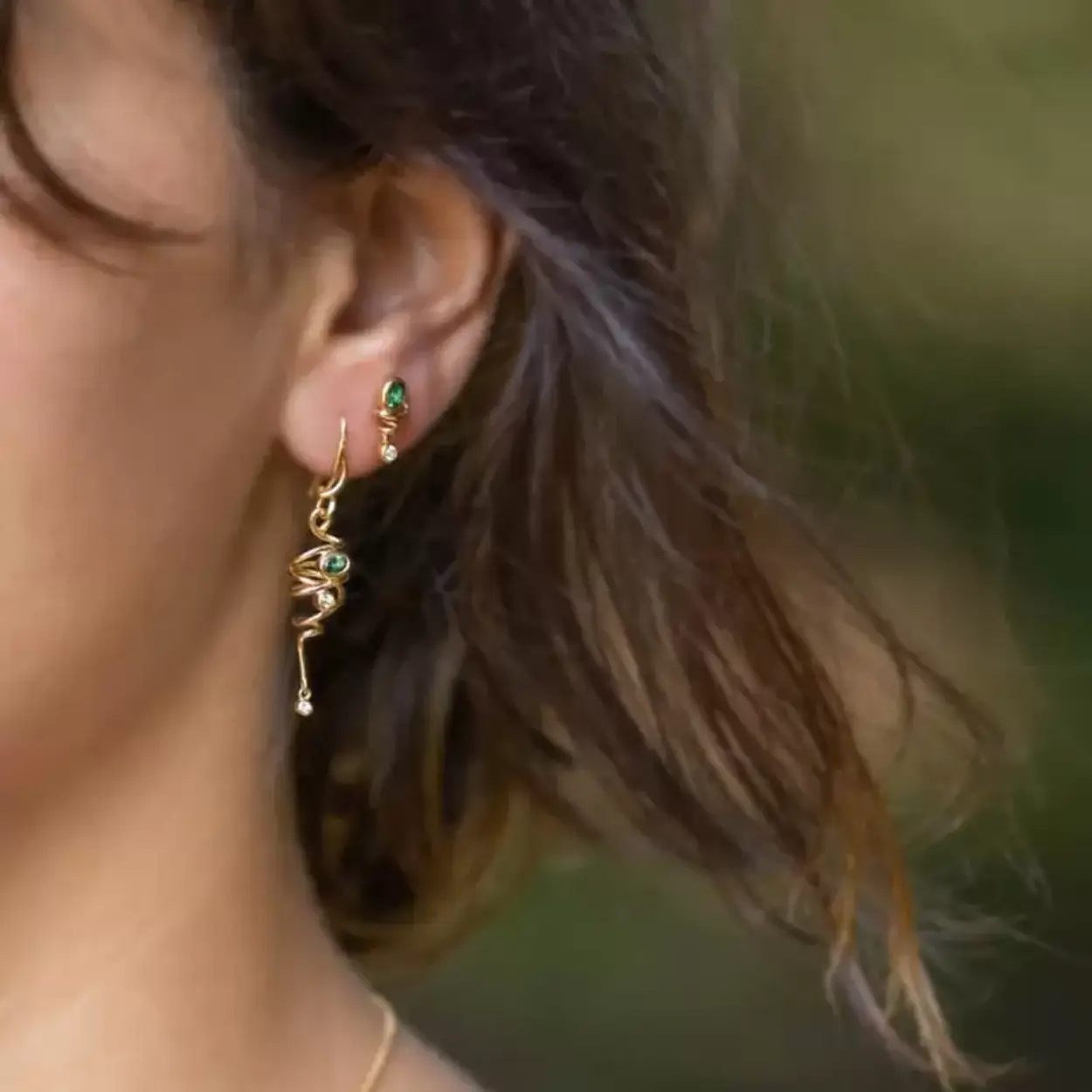 De oorbellen zijn uitgevoerd met drie verschillende edelstenen die harmonieus samengaan in een kleurenschema van groen en wit. De groene kwartsen hebben een afmeting van 4 x 3 mm en hebben een heldere en sprankelende uitstraling. De ronde lichtgroene peridot heeft een diameter van 2 mm en voegt een subtiele kleuraccent toe aan het ontwerp. De kleine ronde witte topaas van 1,5 mm zorgt voor een extra vleugje glans en versterkt de helderheid van de andere edelstenen.