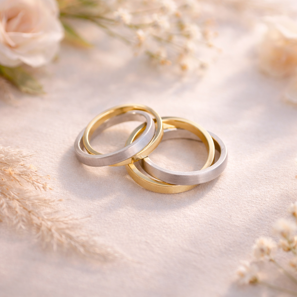Zoeken jullie naar een geheel gouden uitvoering of juist witgoud voor een koelere tint? Dat kan! Deze ringen zijn volledig aanpasbaar, zodat ze precies aansluiten bij jullie stijl en voorkeuren.