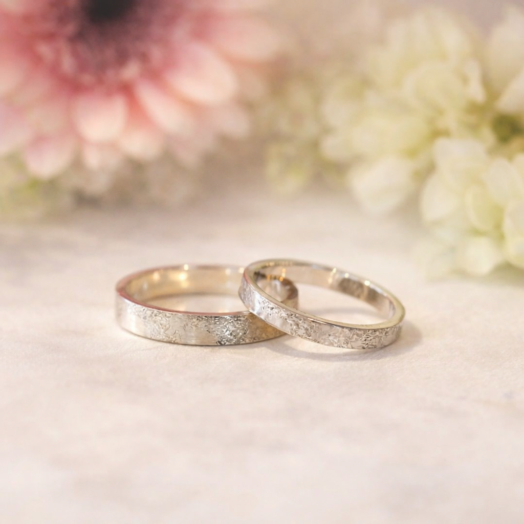 De ringen kunnen we volledig naar wens maken. Denk aan geelgoud, witgoud, zilver of titanium, met of zonder diamant of andere edelstenen. Ook de afwerking kan worden aangepast, bijvoorbeeld gepolijst, gematteerd, gehamerd of met een diepere structuur.